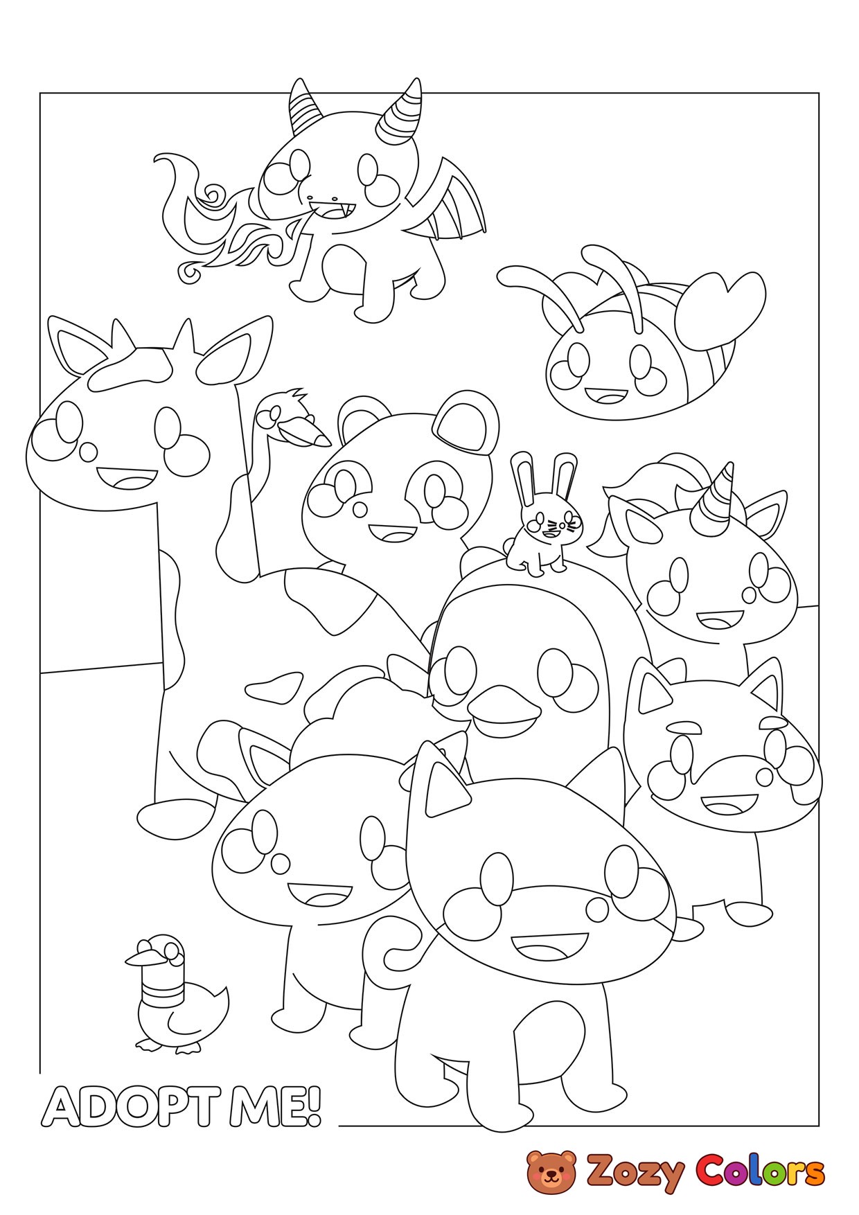 Adopt me Roblox friends. Coloring page to print or download and color for your kids.