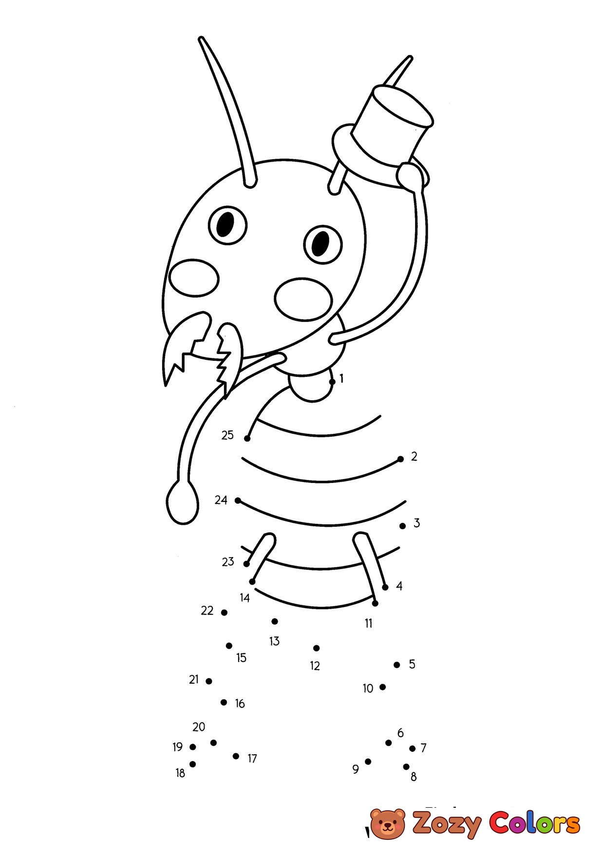 Ant with a hat - Free Dot the dots worksheets. Free and easy print for your kids.