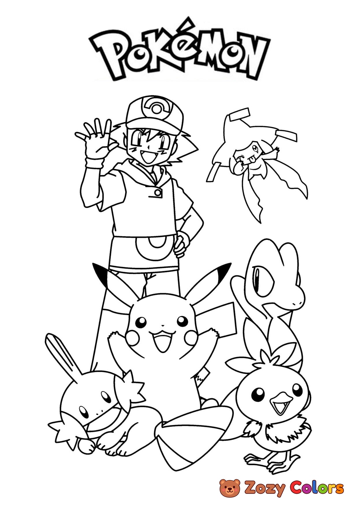 Ash and his pokemon - Pokemon. Coloring page to print or download and color for your kids.