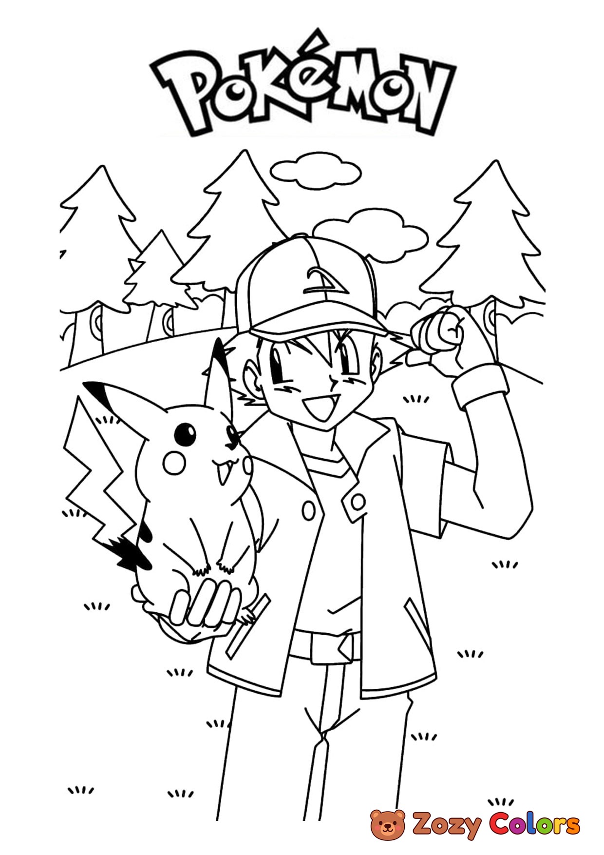Ash and Pikachu - Pokemon. Coloring page to print or download and color for your kids.