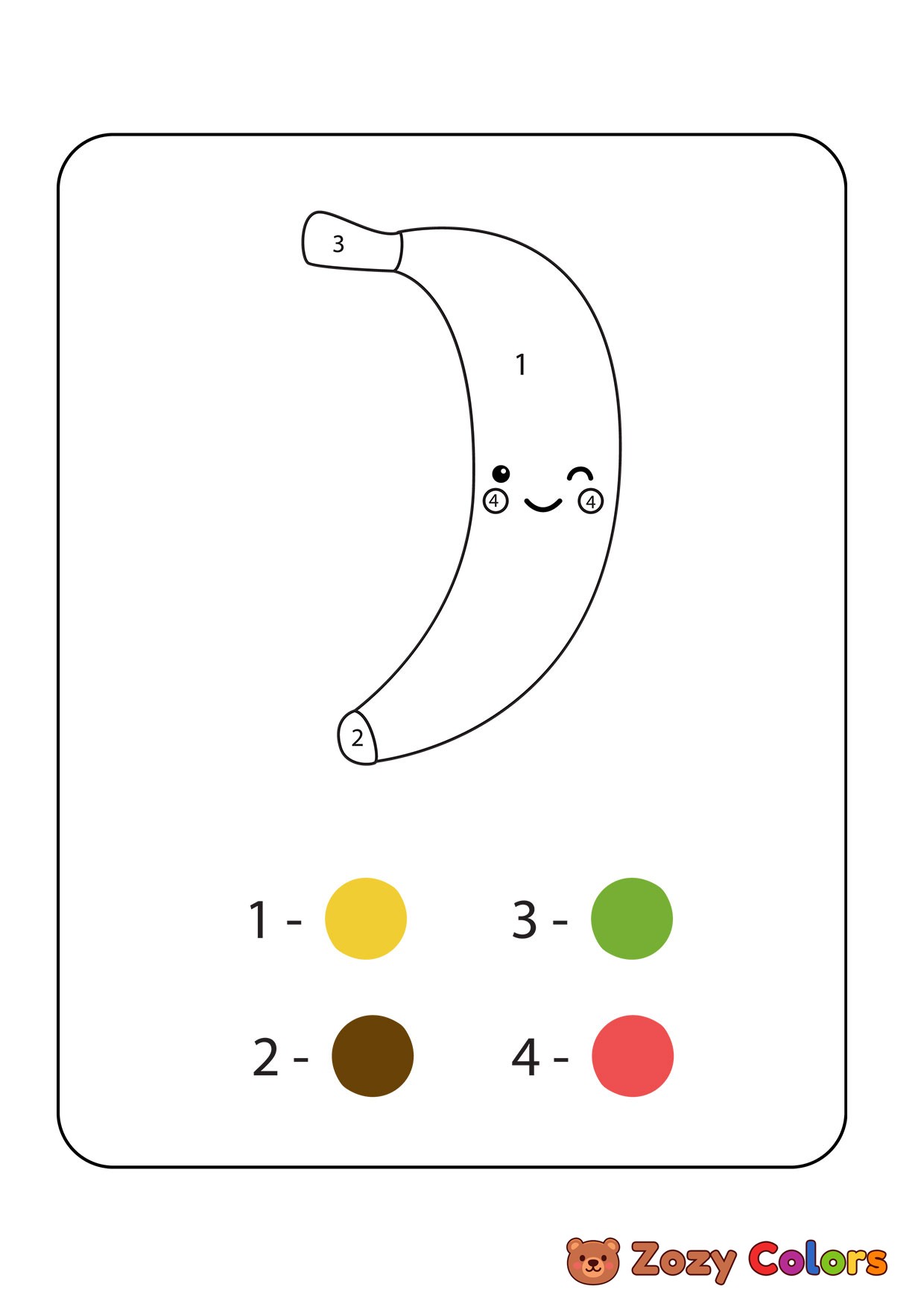 Bannana color by numbers. Coloring page to print or download and color for your kids.