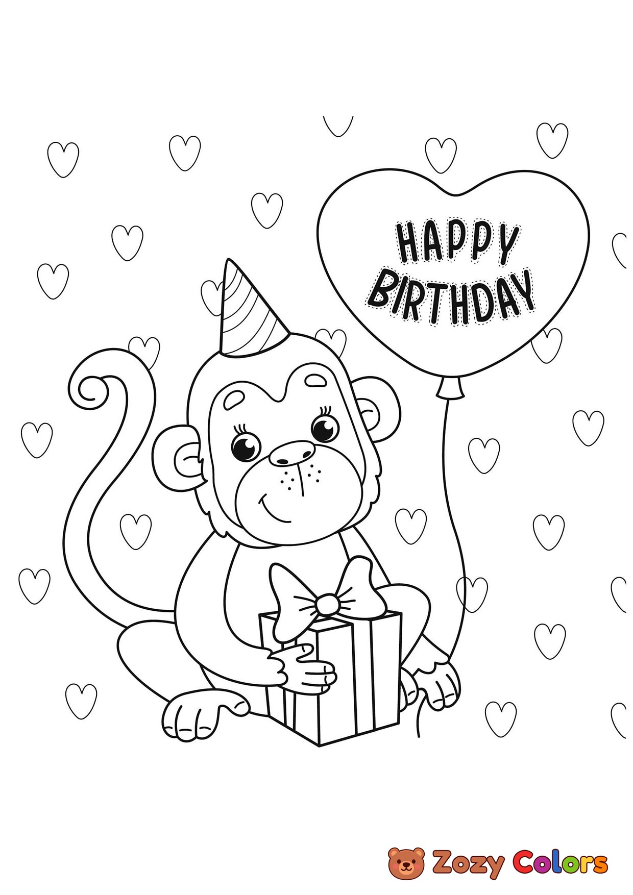 Birthday Monkey. Coloring page to print or download and color for your kids.