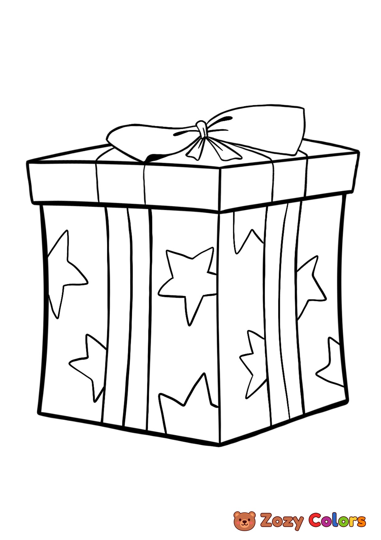 Birthday present with stars. Coloring page to print or download and color for your kids.