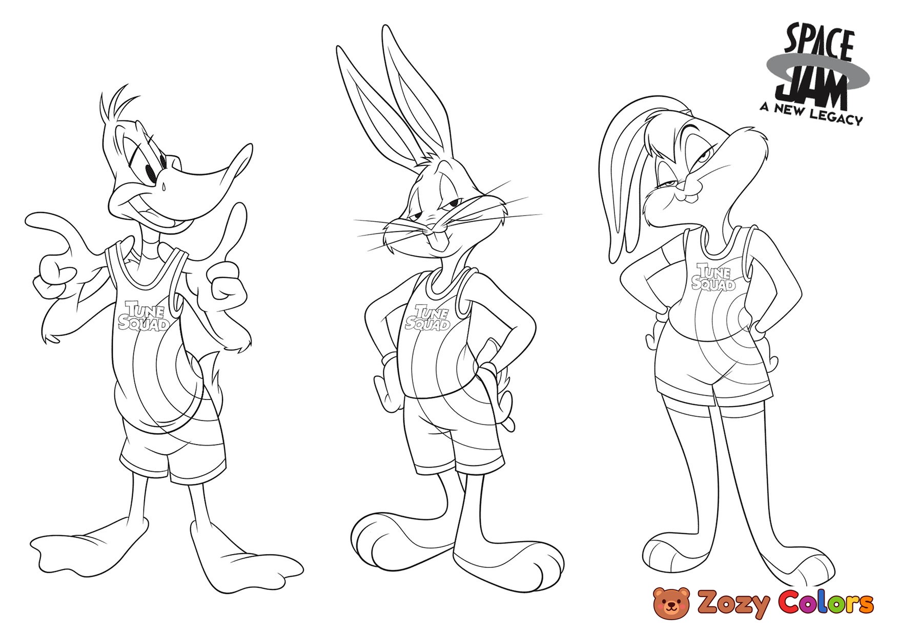 Bugs, Duffy and Lola. Coloring page to print or download and color for your kids.