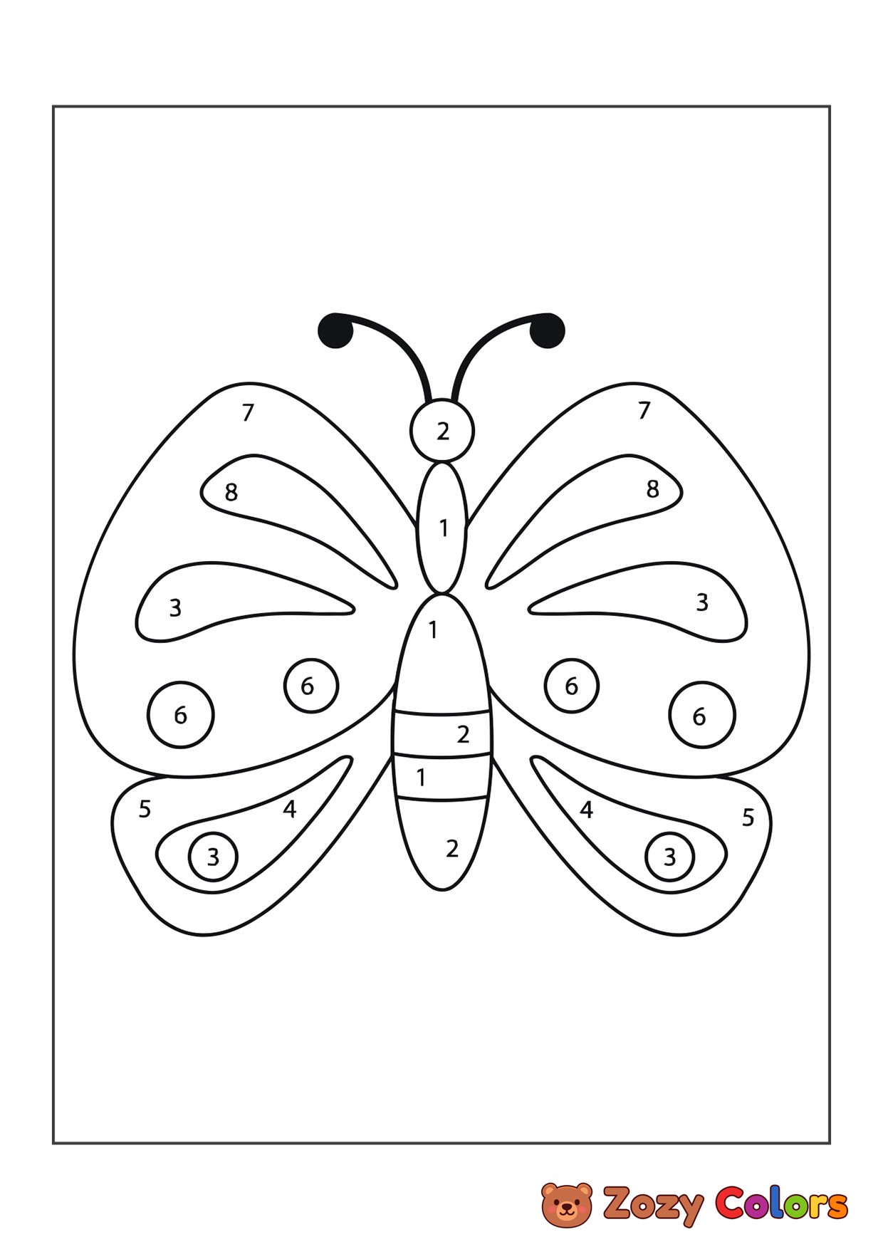 Butterfly color by number. Coloring page to print or download and color for your kids.