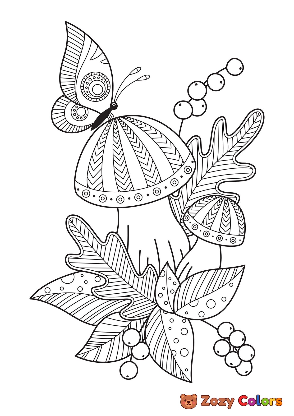 Butterfly on a shroom. Coloring page to print or download and color for your kids.