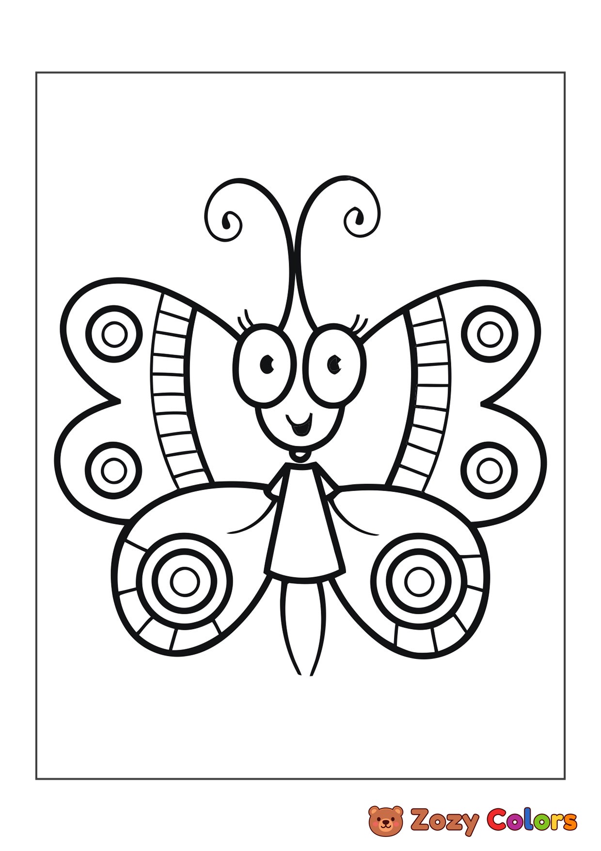 Butterfly with big eyes. Coloring page to print or download and color for your kids.