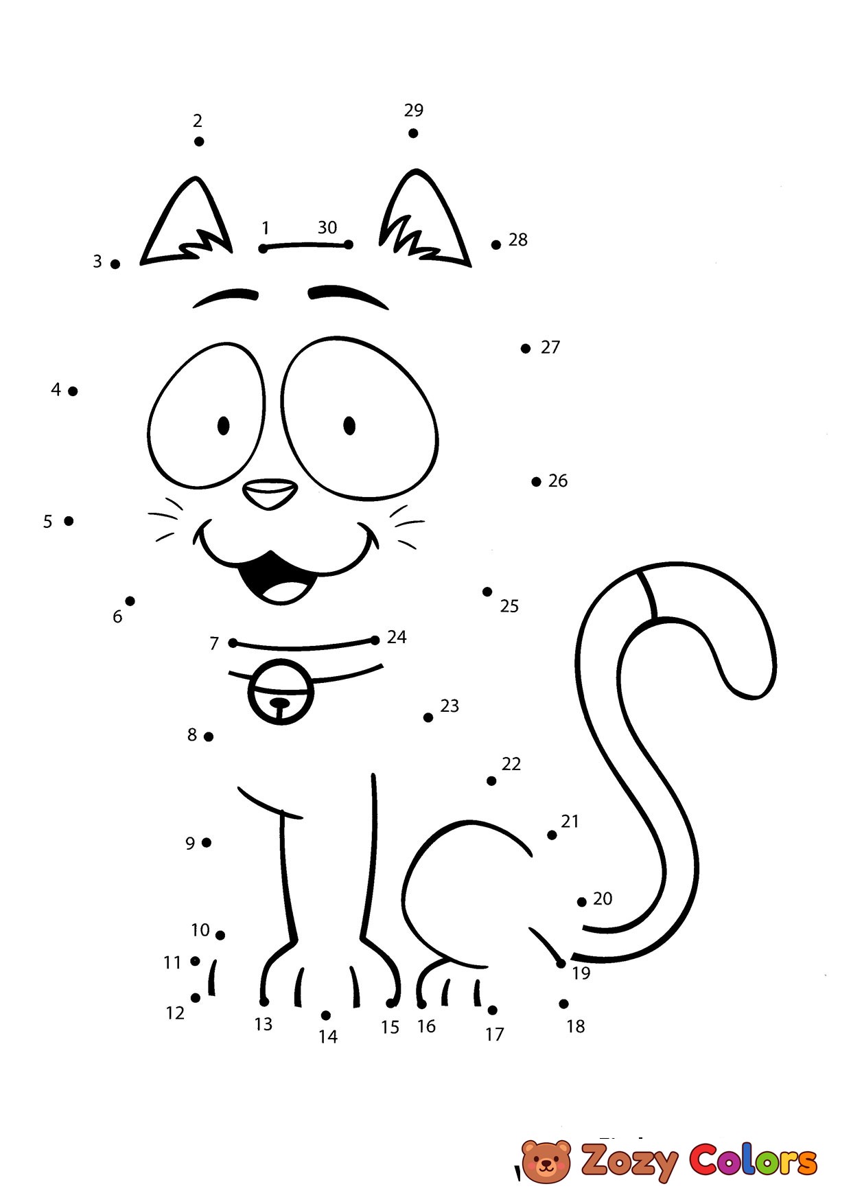 Cat - Free Dot the dots worksheets. Print, connect and color for kids.