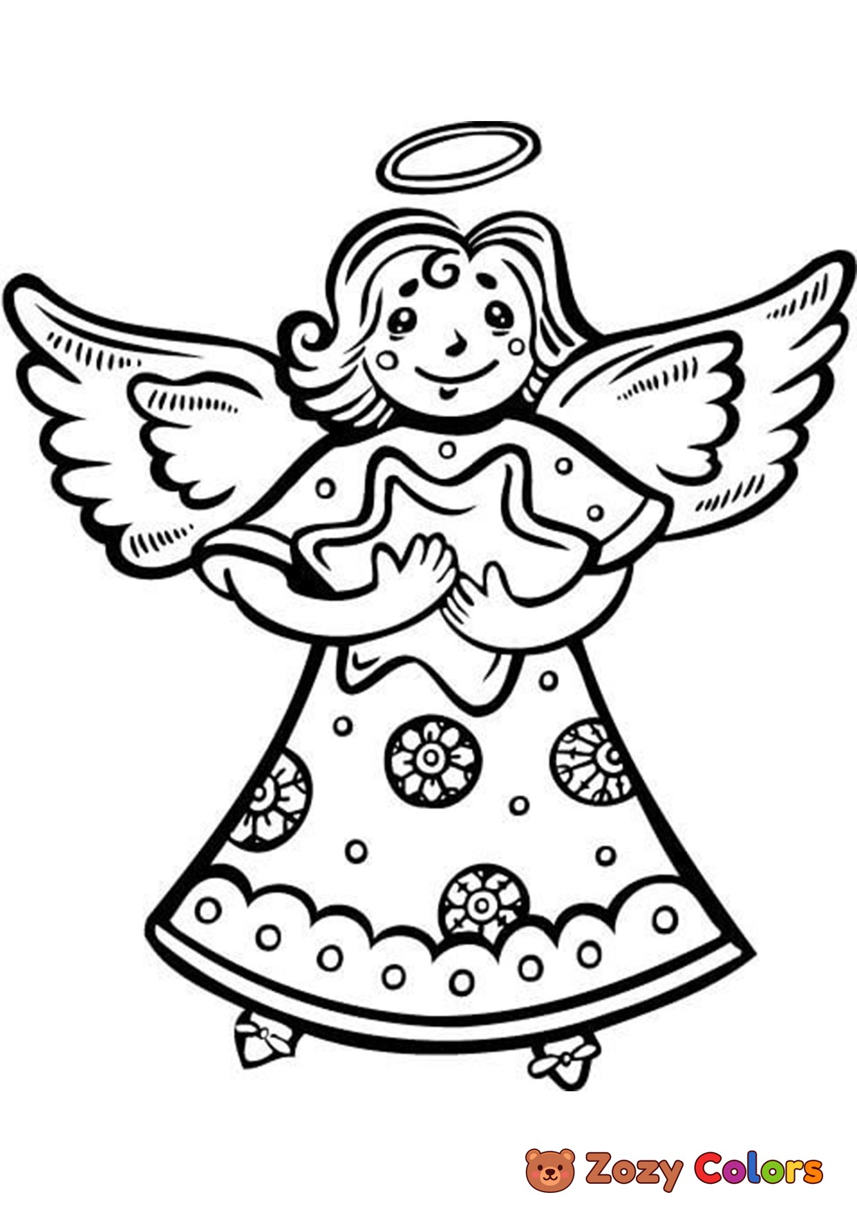 Christmas angel with a star. Coloring page to print or download and color for your kids.