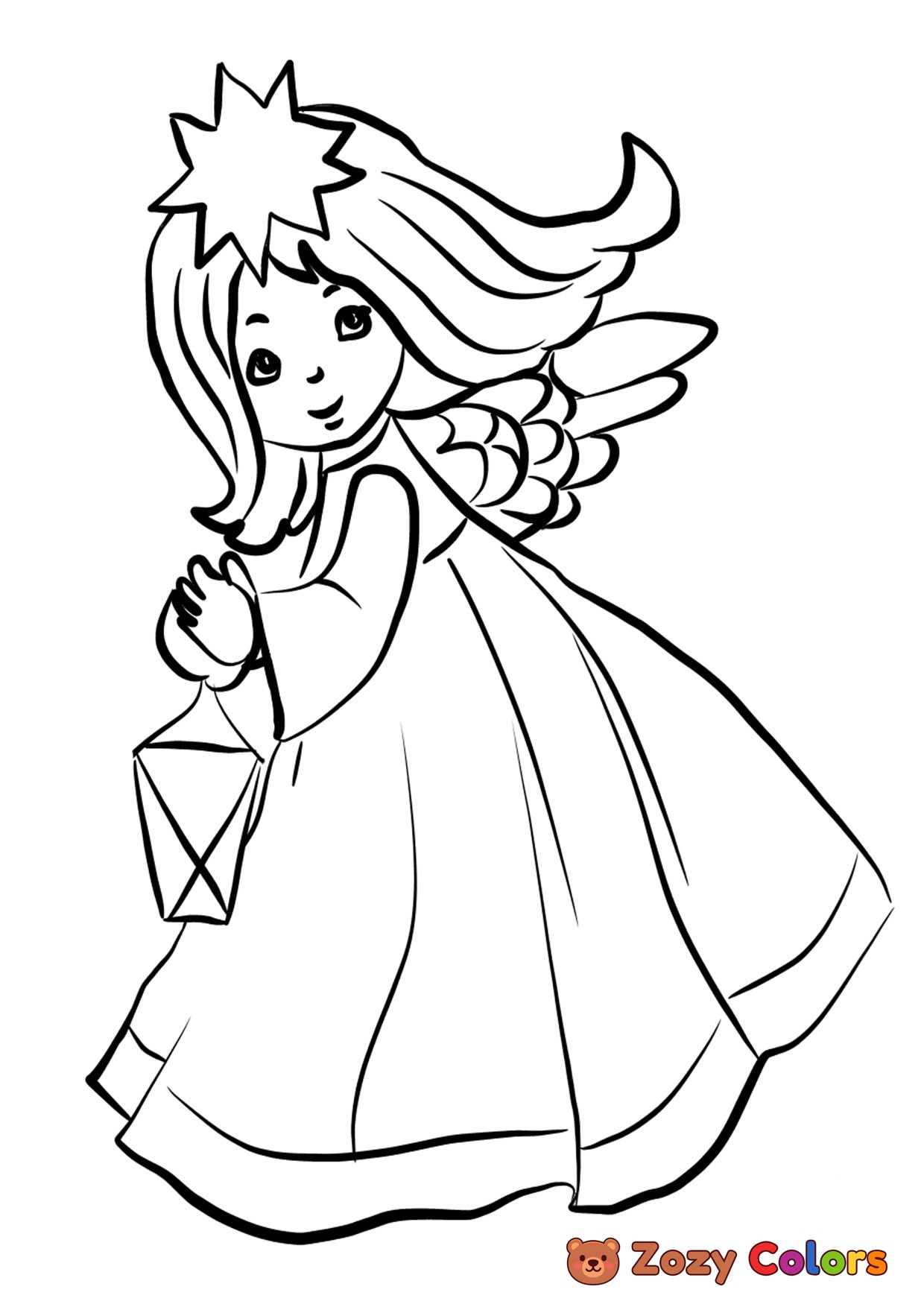 Christmas angel with lantern. Coloring page to print or download and color for your kids.