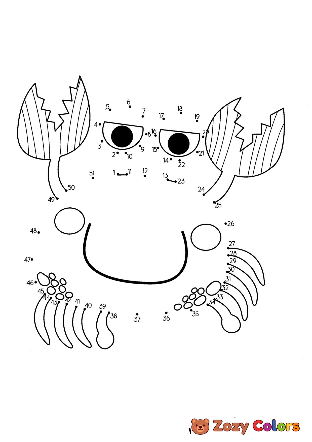Crab - Free Dot the dots worksheets. Print, connect and color for kids.