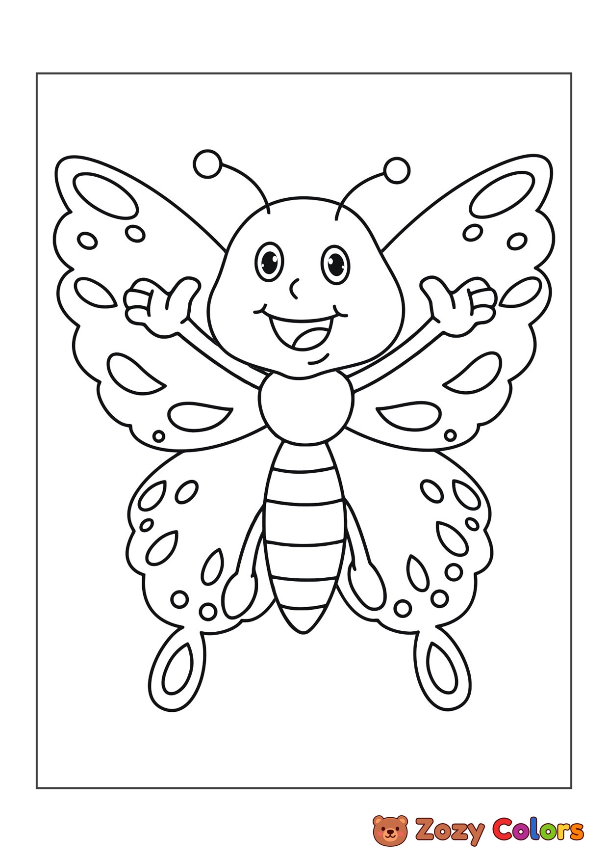 Cute butterfly with hands. Coloring page to print or download and color for your kids.