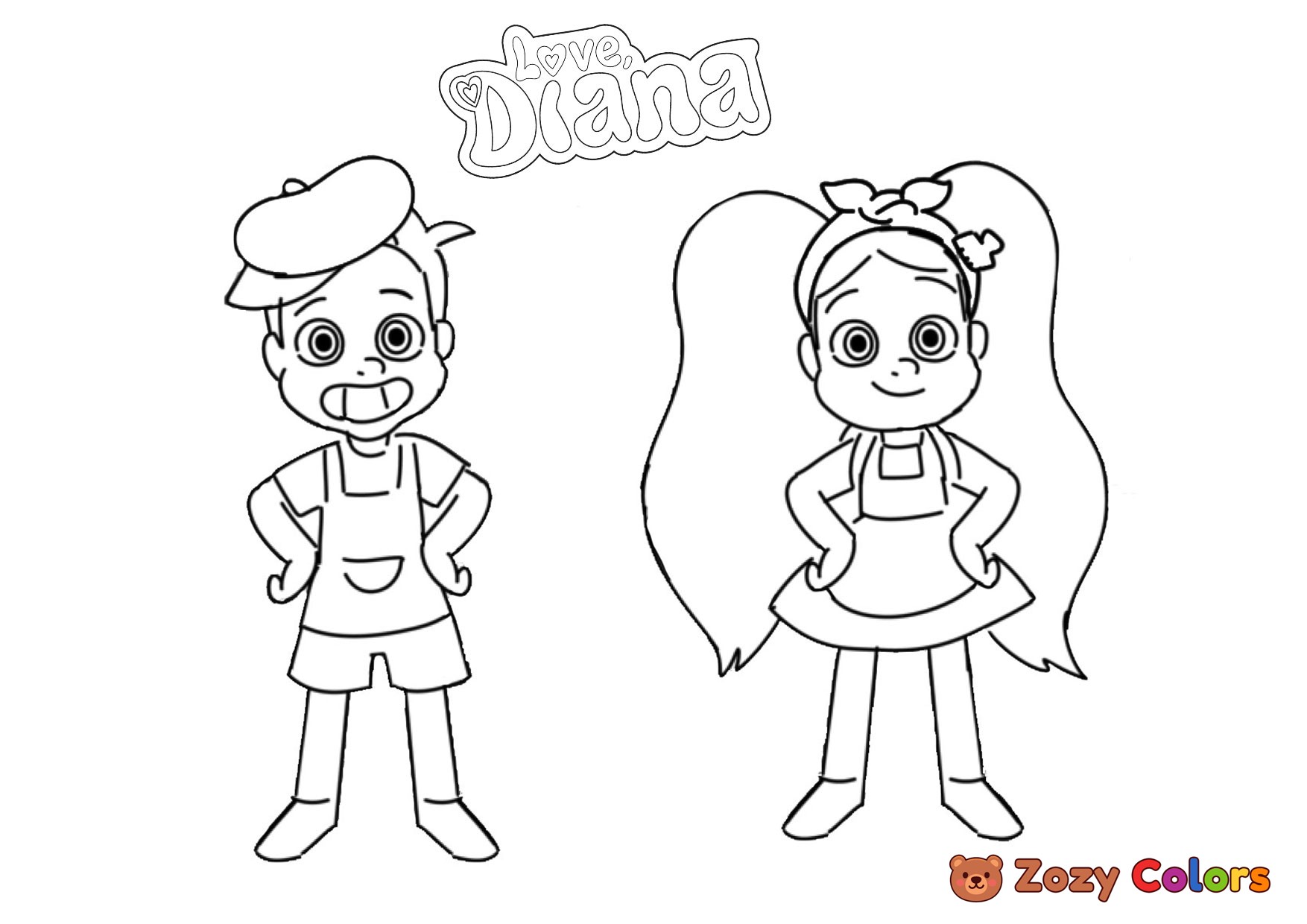 Diana and Roma smiling. Coloring page to print or download and color for your kids.