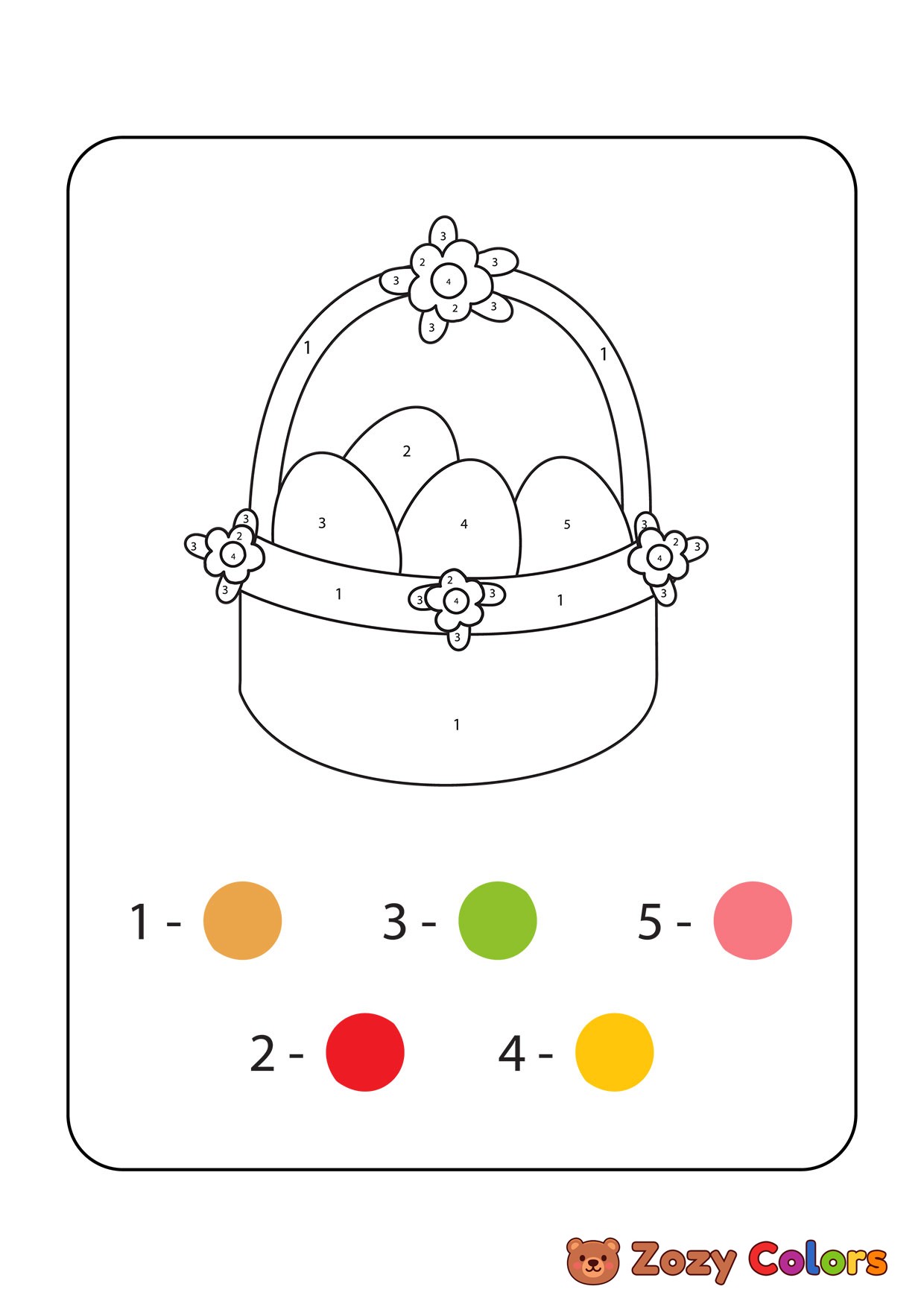 Easter basket color by numbers. Coloring page to print or download and color for your kids.