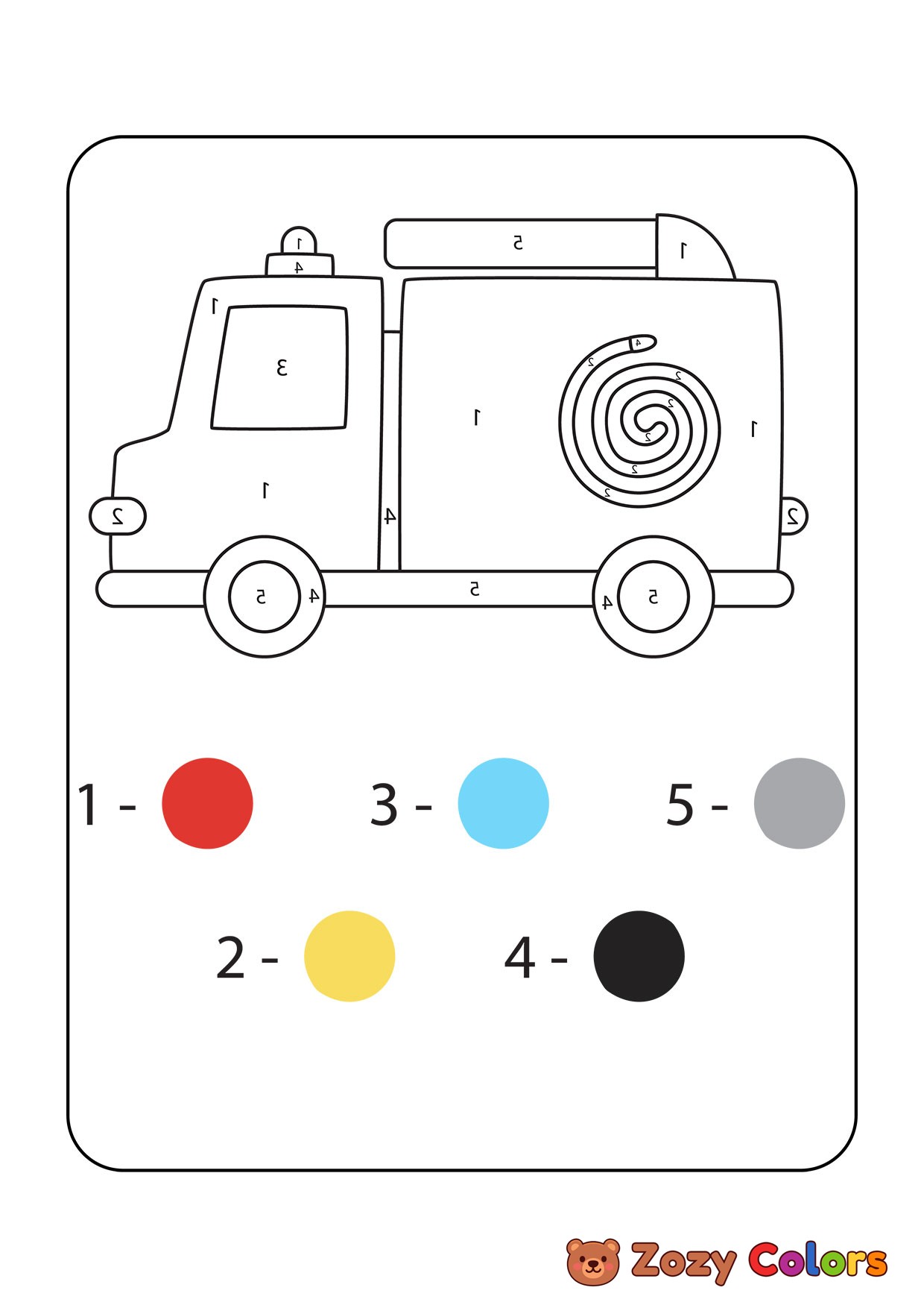 Fire truck color by numbers. Coloring page to print or download and color for your kids.