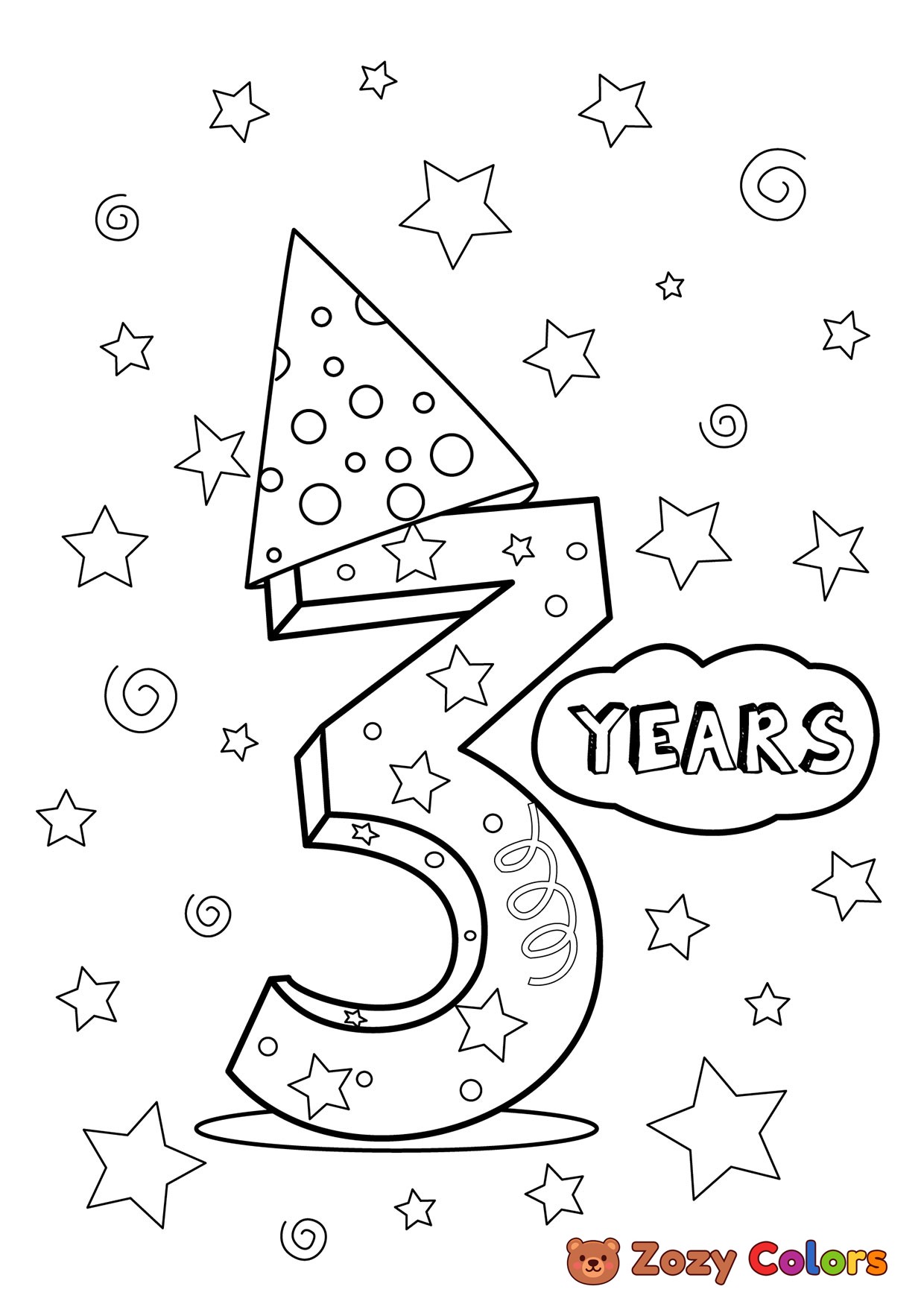 Happy 3rd birthday. Coloring page to print or download and color for your kids.