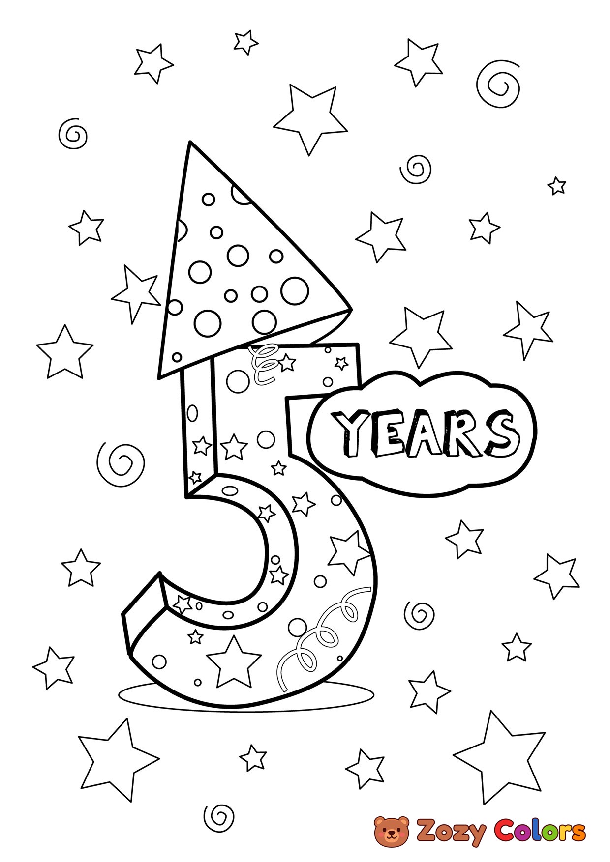 Happy 5th birthday. Coloring page to print or download and color for your kids.
