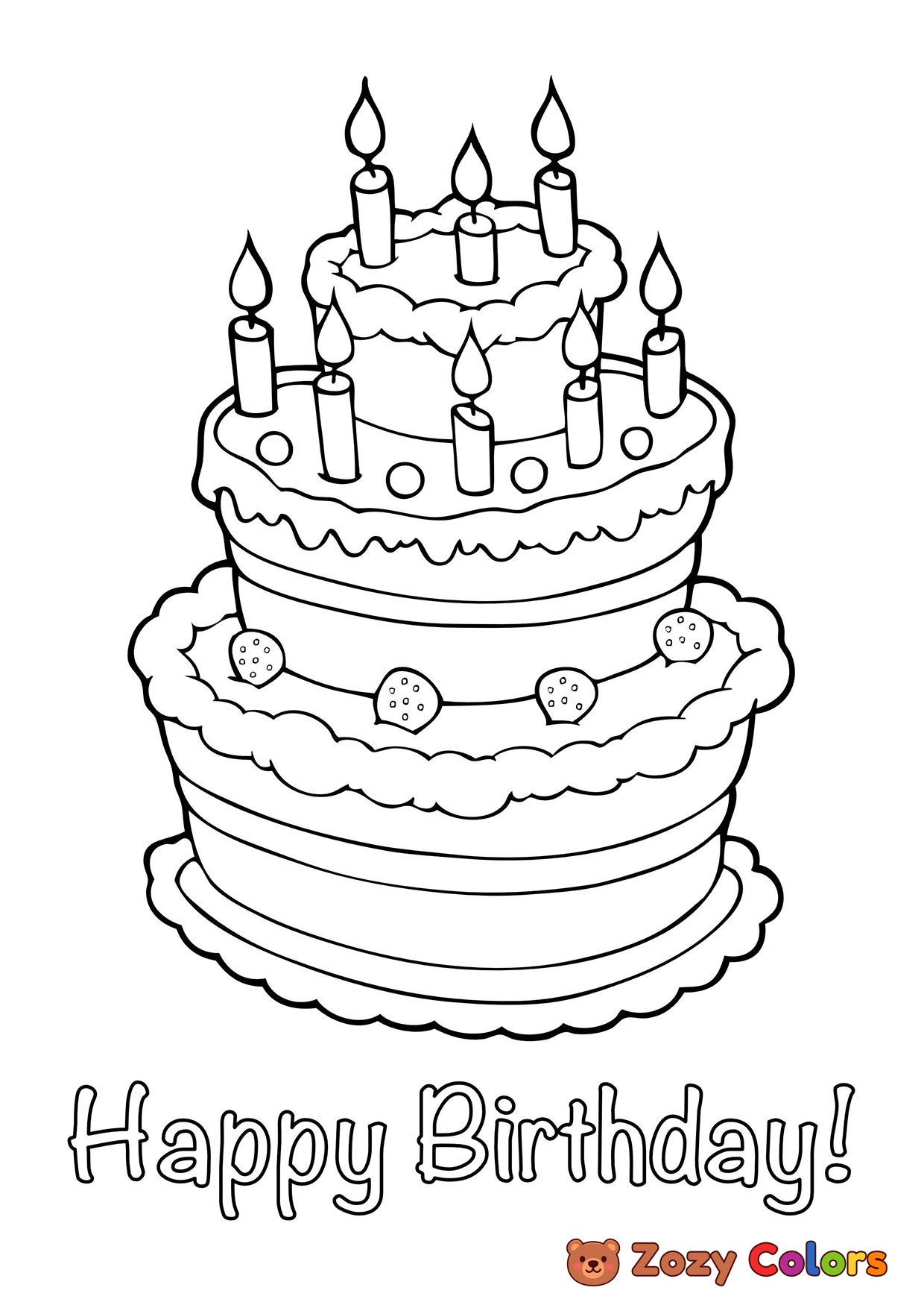 Happy birthday cake. Coloring page to print or download and color for your kids.
