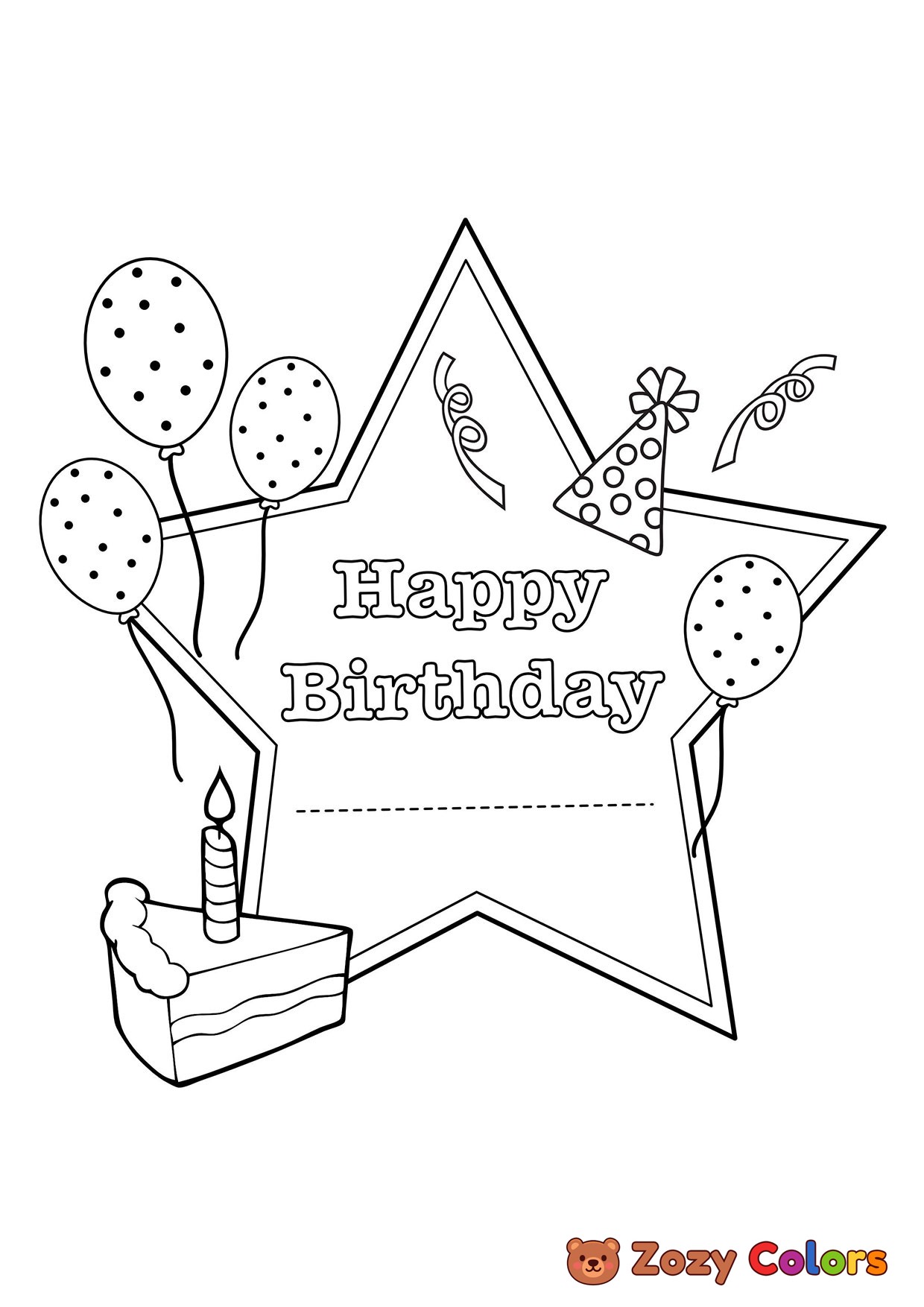 Happy birthday card. Coloring page to print or download and color for your kids.