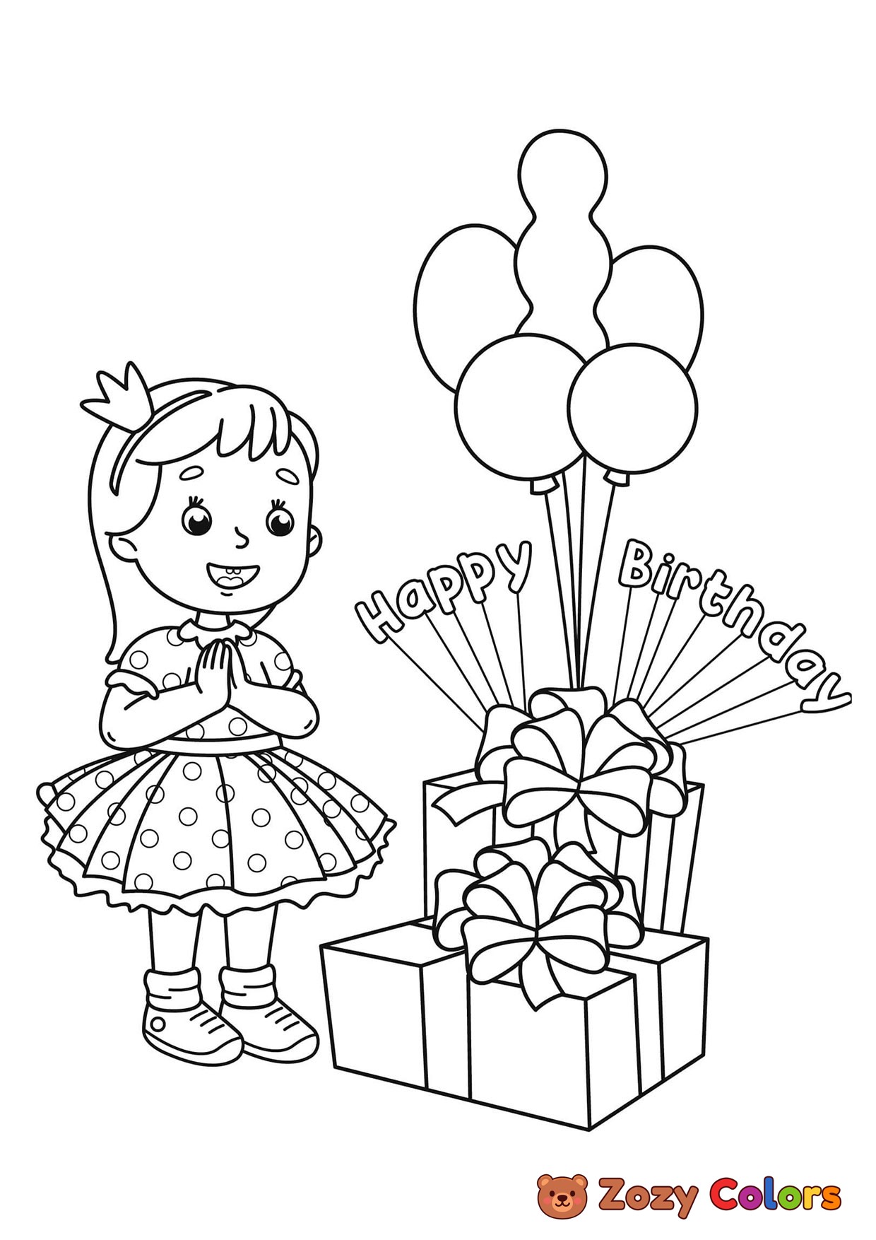 Happy Birthday girl. Coloring page to print or download and color for your kids.