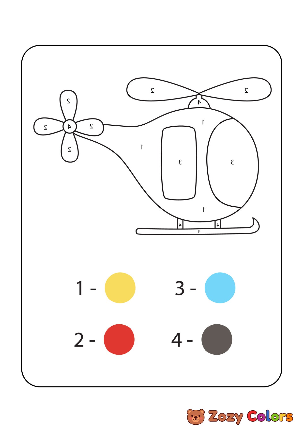 Helicopter color by numbers. Coloring page to print or download and color for your kids.