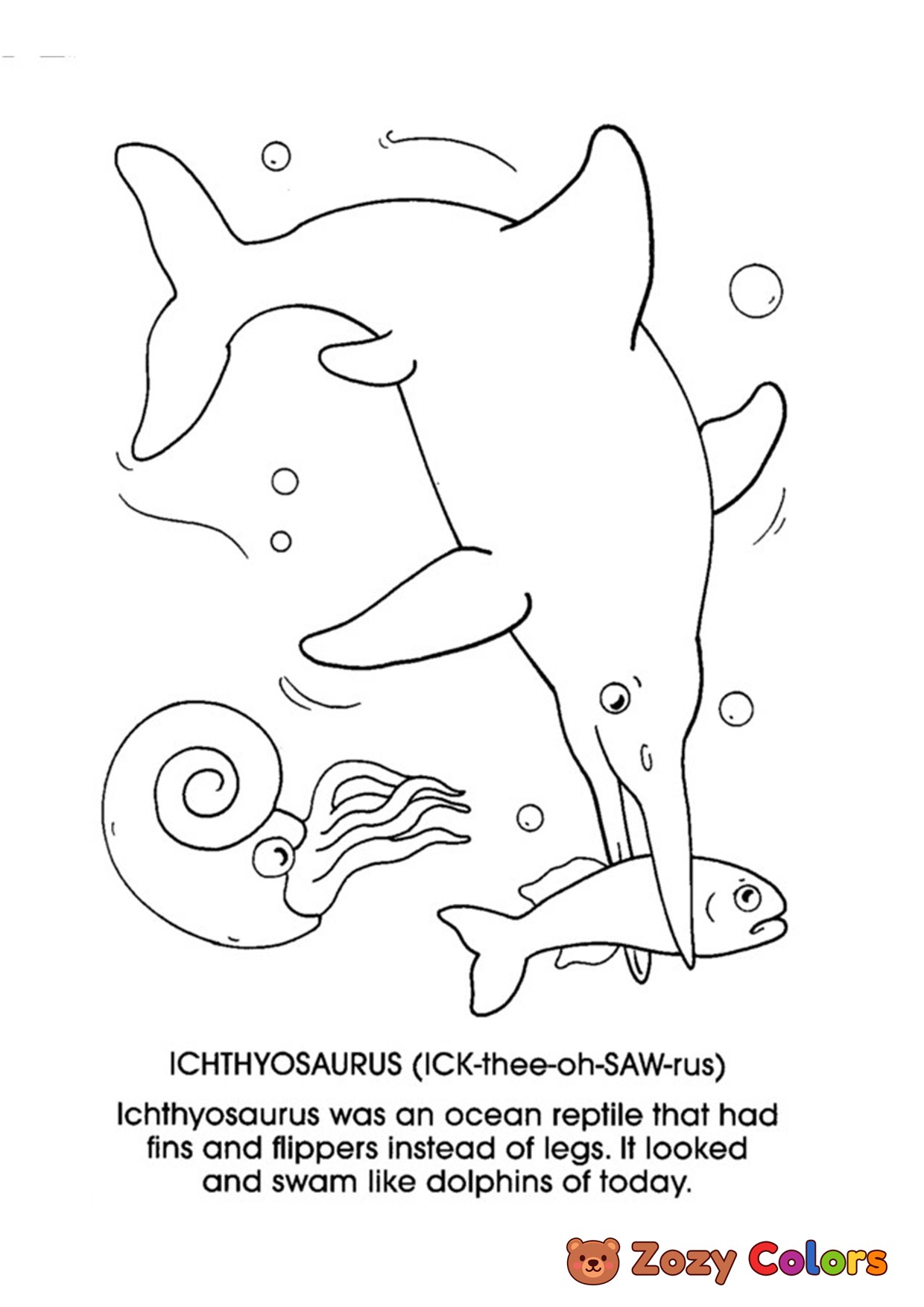 Ichthyosaurus. Coloring page to print or download and color for your kids.