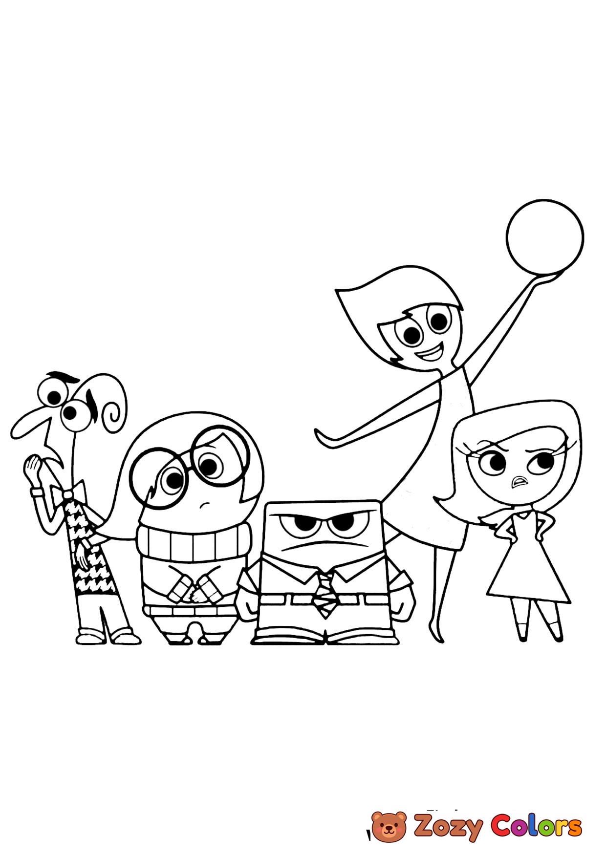 Inside Out all characters from the animated movie. Coloring page to print or download and color for kids.