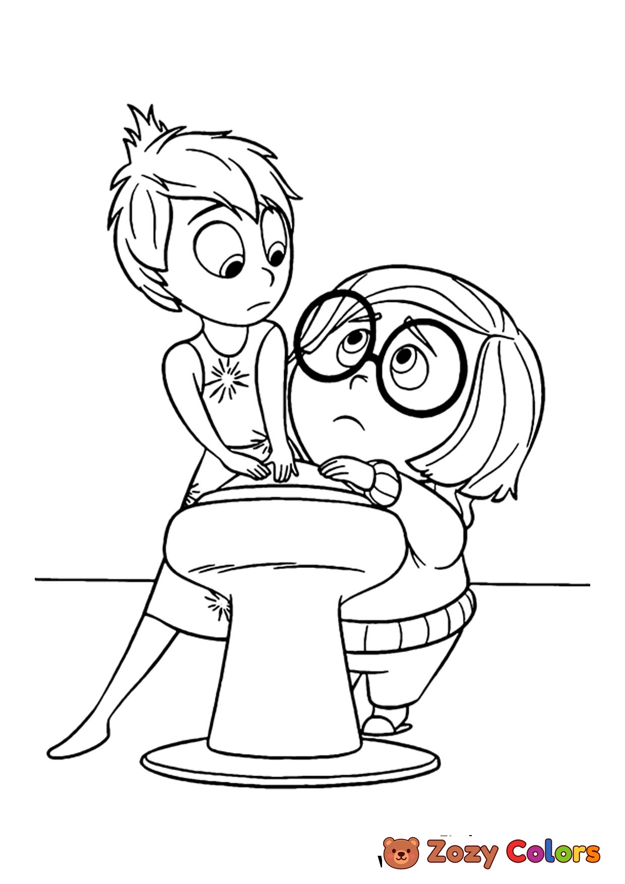 Inside Out Joy and Sadness Coloring Page saving Riley. Coloring Page. Coloring page to print or download and color for kids.