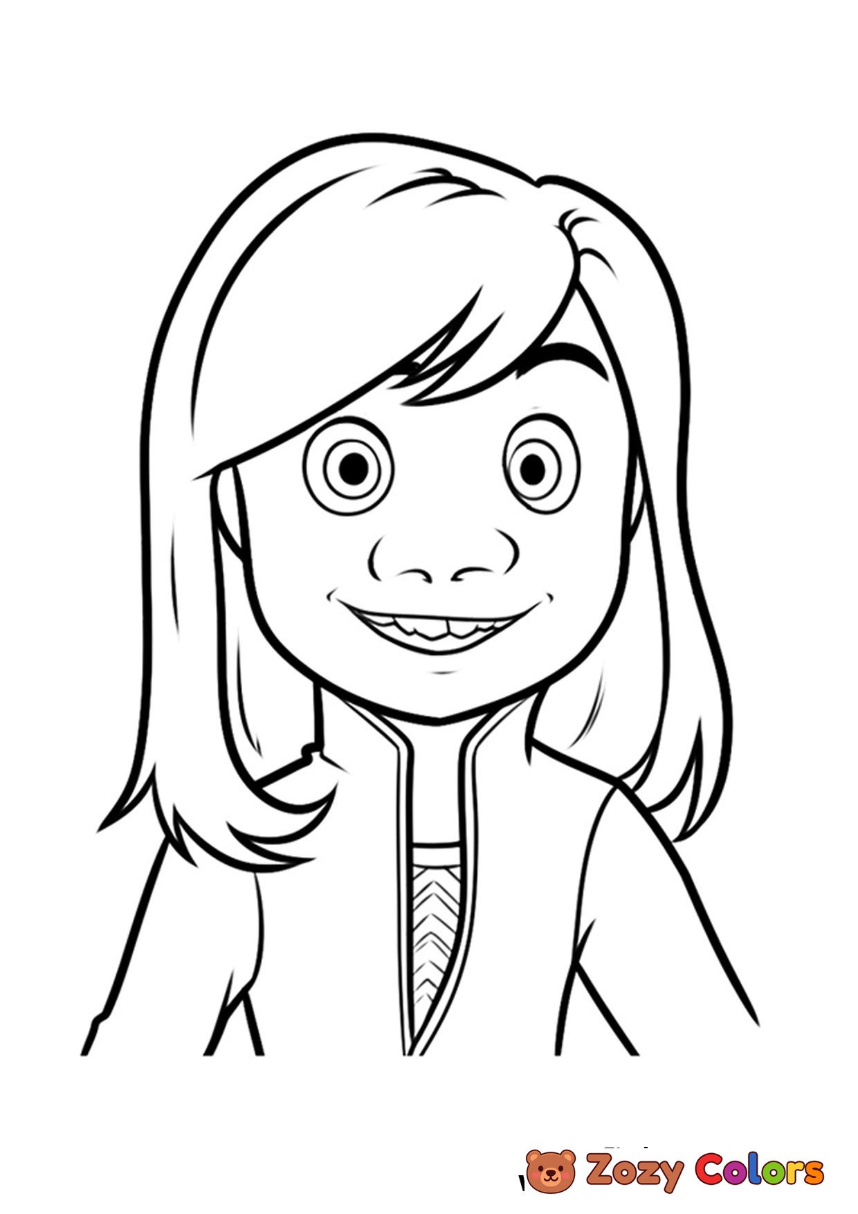 Inside Out Riley Coloring Page smiling. Coloring Page. Coloring page to print or download and color for kids.