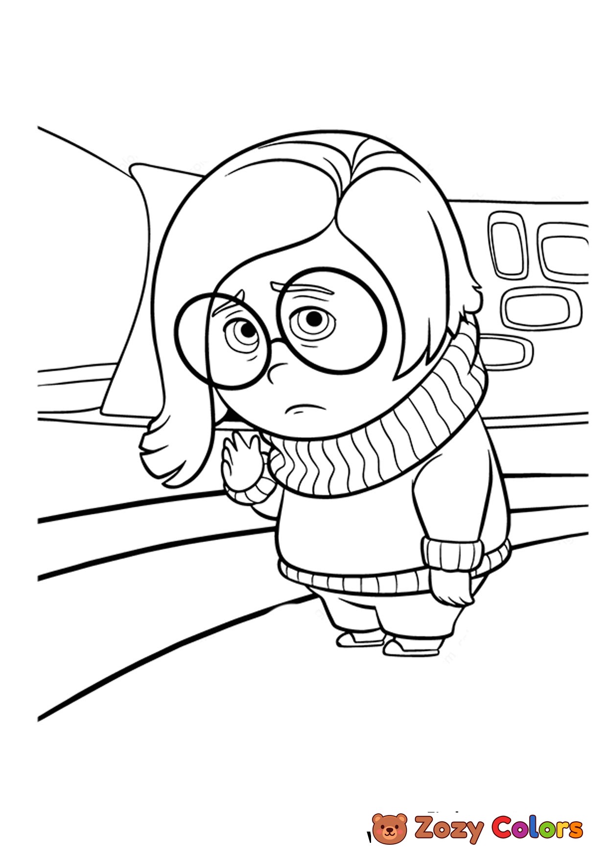 Inside Out Sadness Coloring Page being sad. Coloring Page. Coloring page to print or download and color for kids.