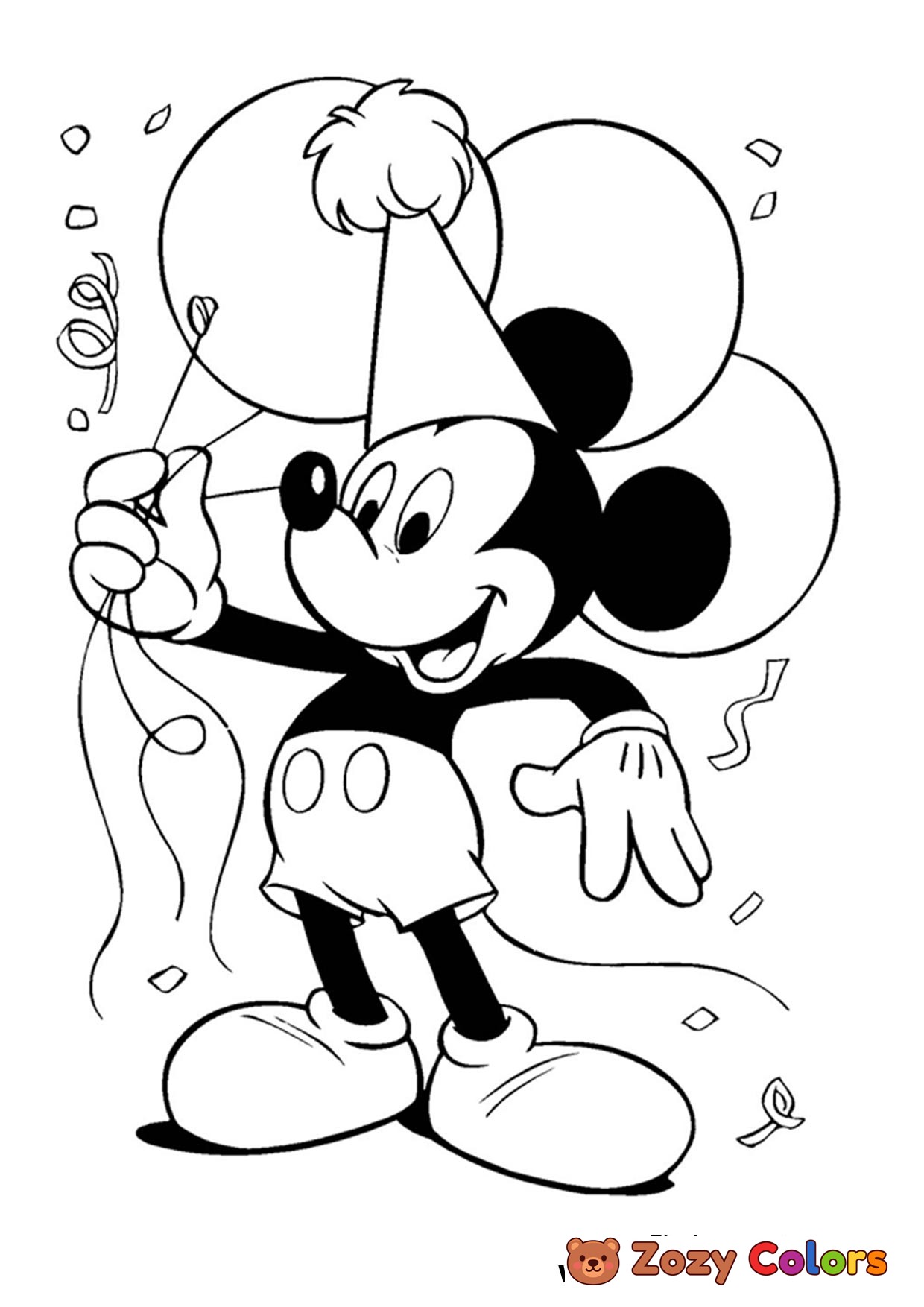 Mickey Mouse party for a birthday. Coloring page to print or download and color.