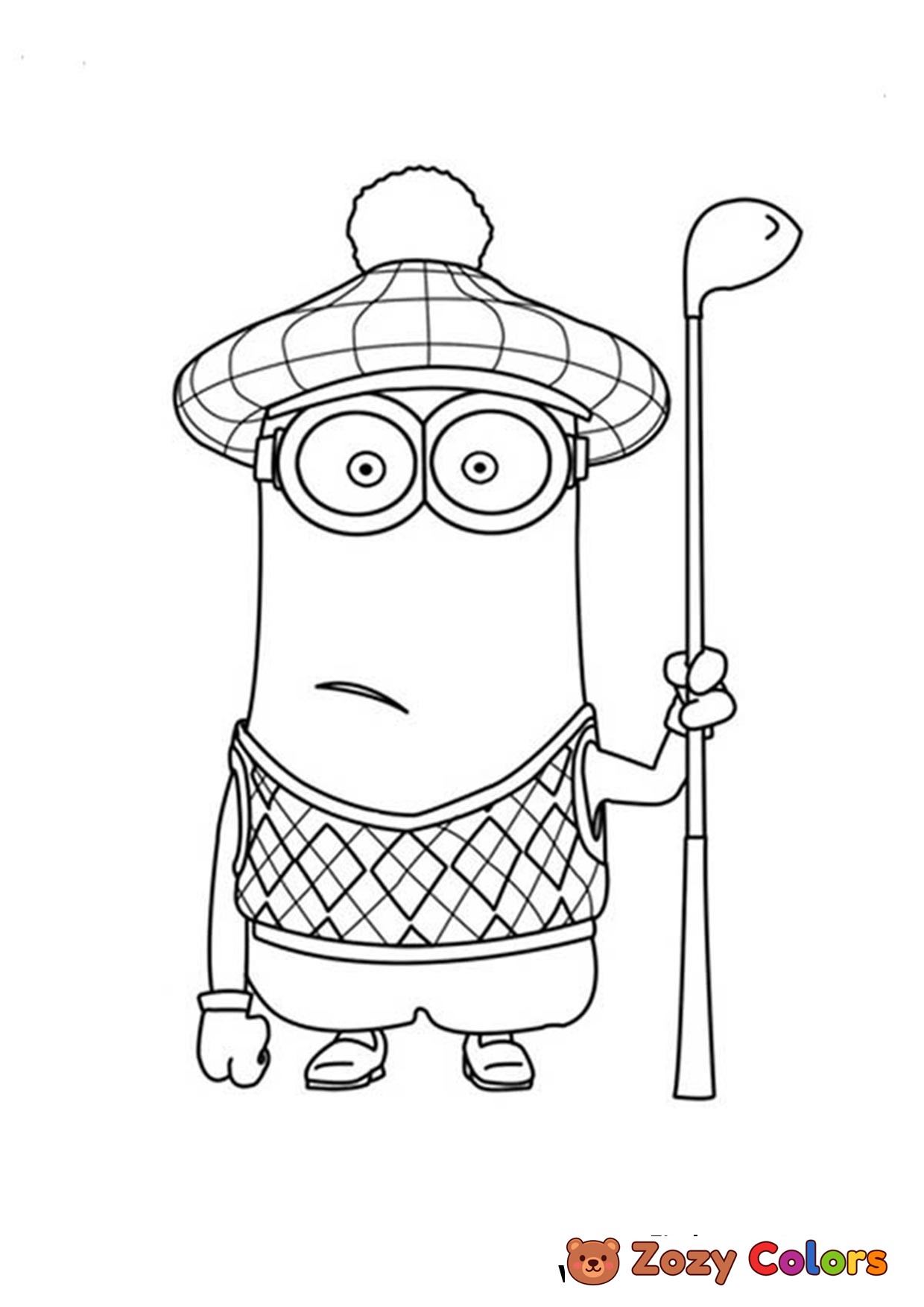 Minions Bob Golfing and looking confused. Coloring page to print or download and color.