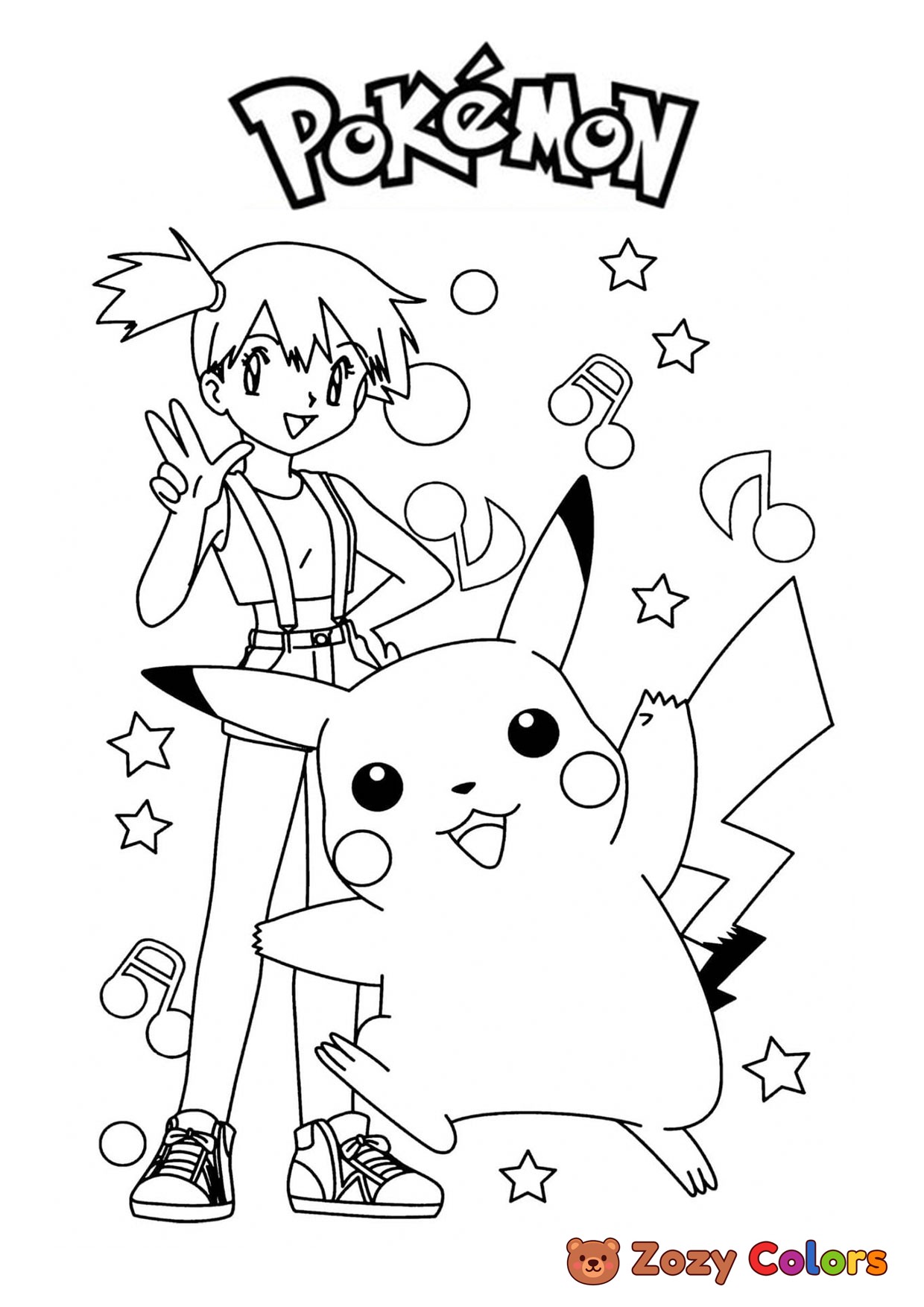 Misty and Pikachu - Pokemon. Coloring page to print or download and color for your kids.