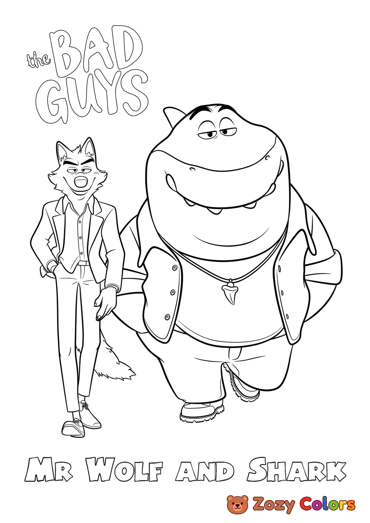 Mr wolf and shark. Coloring page to print or download and color for your kids.