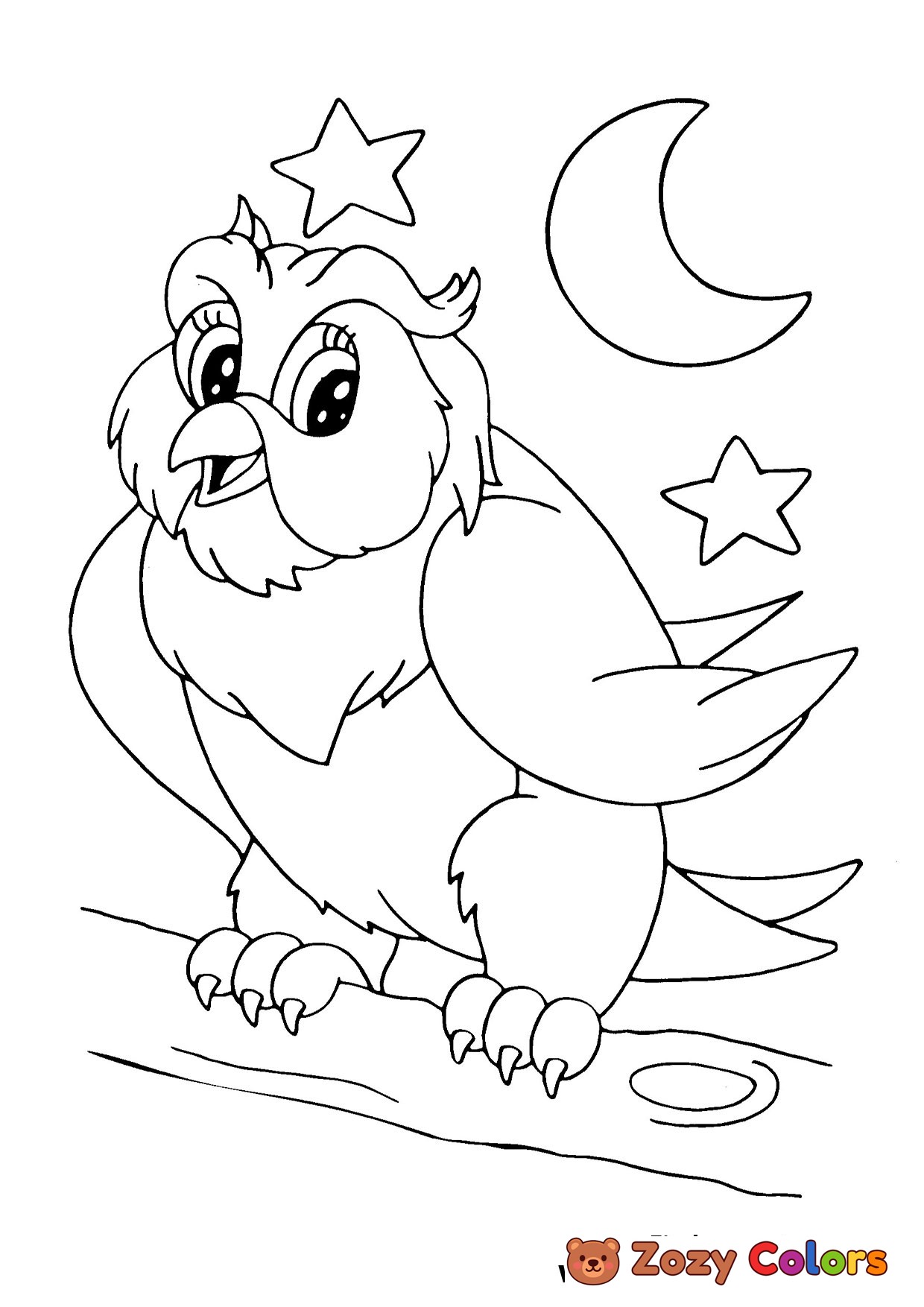 Owl on a branch. Coloring page to print or download and color for your kids.