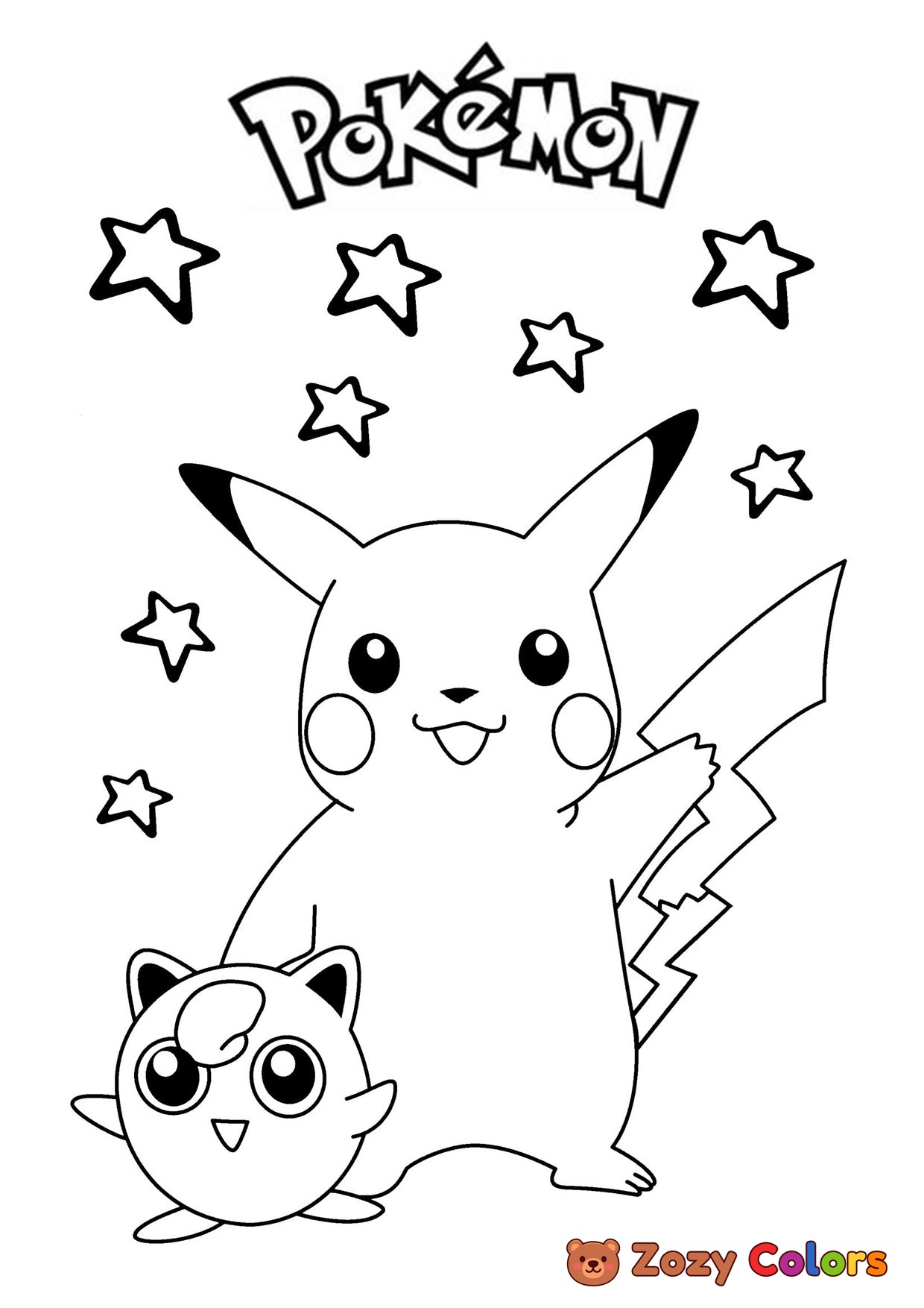 Pikachu and Jigglypuff - Pokemon. Coloring page to print or download and color for your kids.