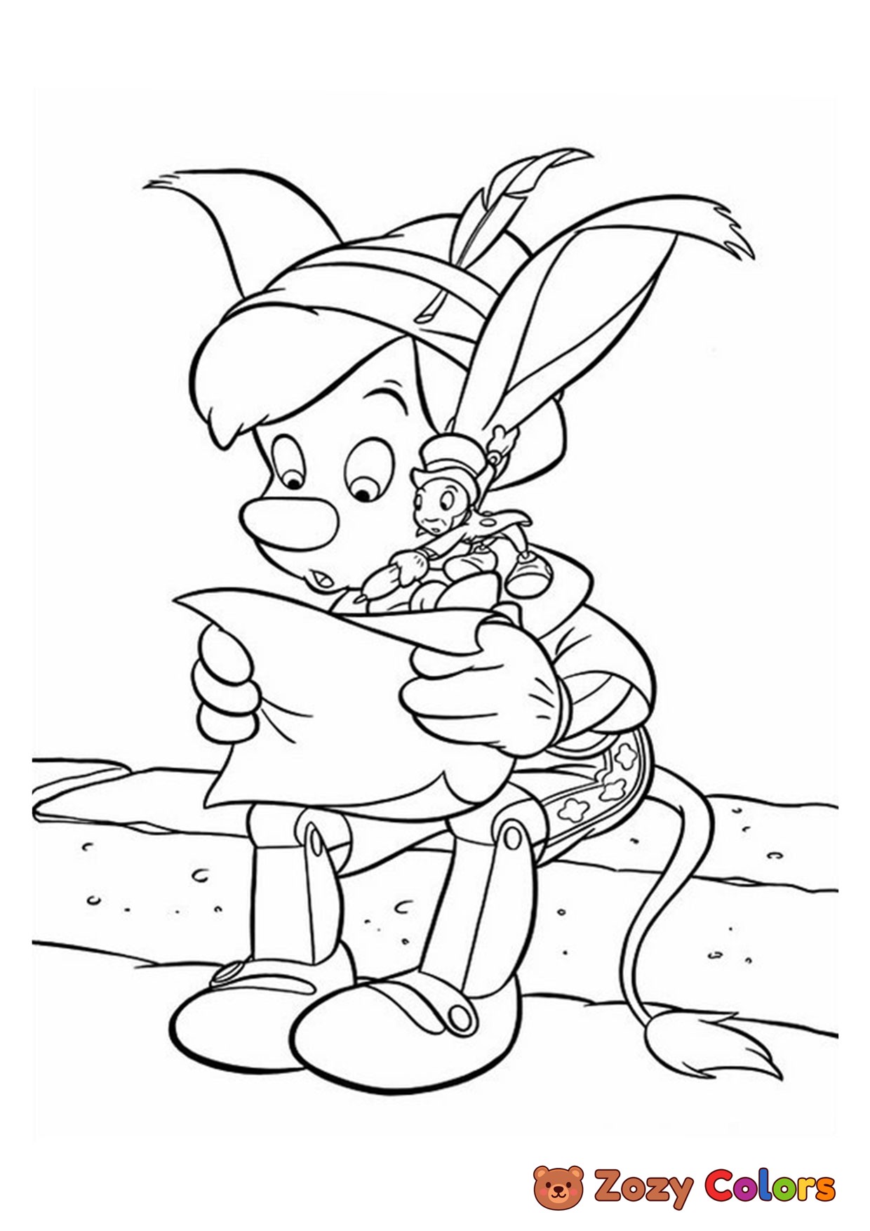Pinocchio with monkey ears. Coloring page to print or download and color for your kids.