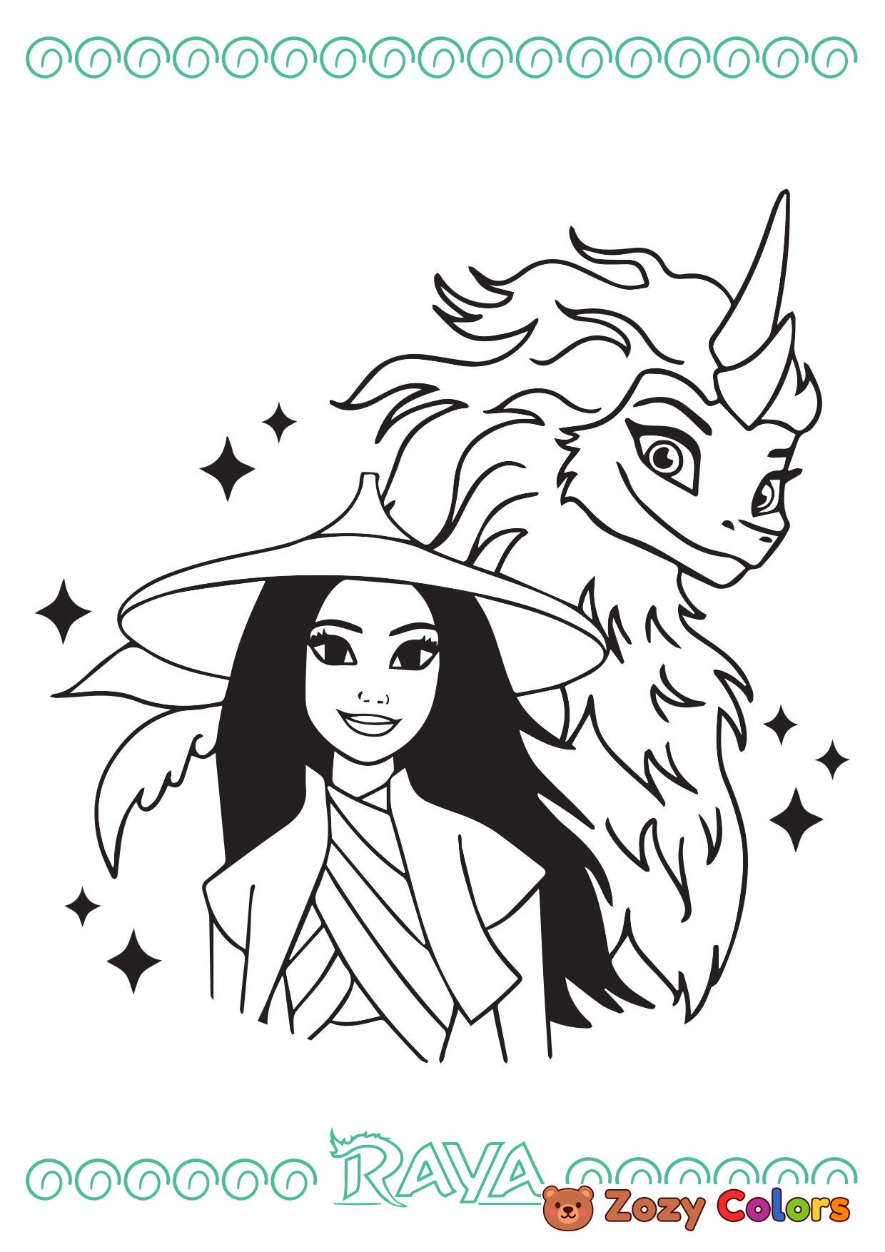 Raya and Sisu. Coloring page to print or download and color for your kids.