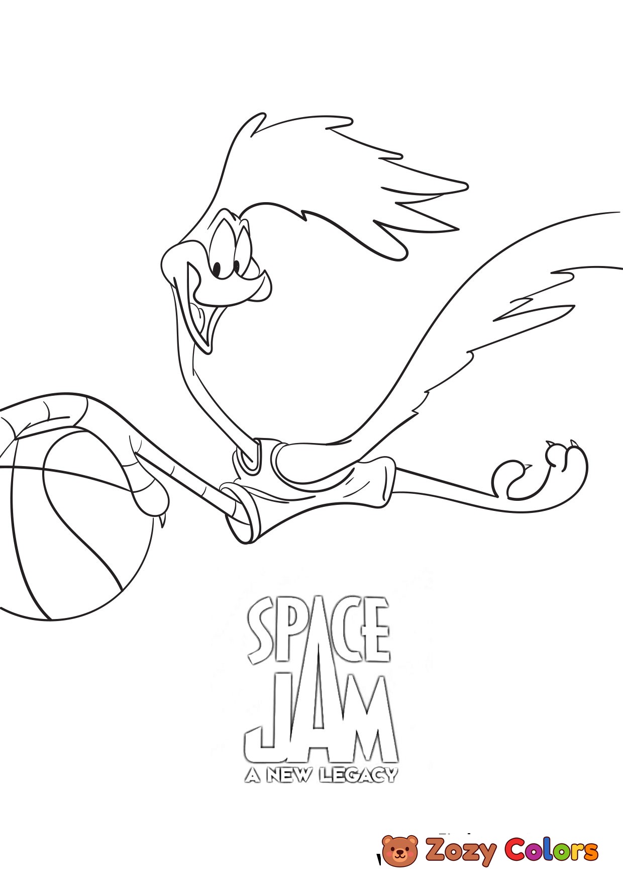 Road Runner running with a basketball. Coloring page to print or download and color for your kids.