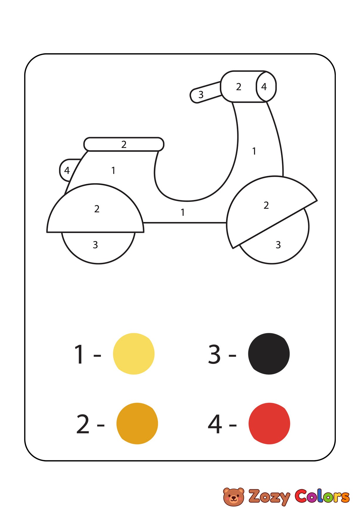 Scooter color by numbers. Coloring page to print or download and color for your kids.