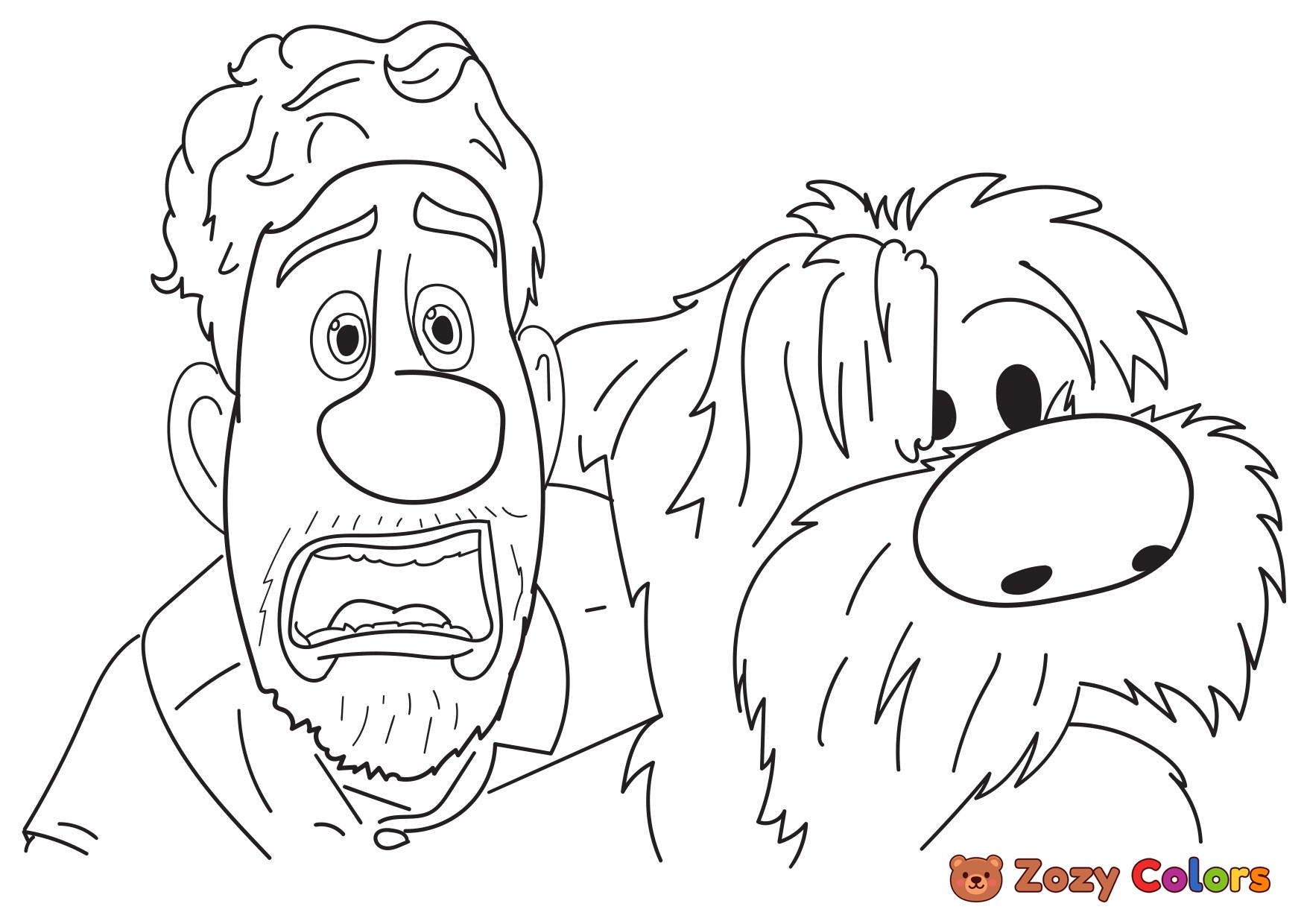 Searcher Clade with his dog. Coloring page to print or download and color for your kids.