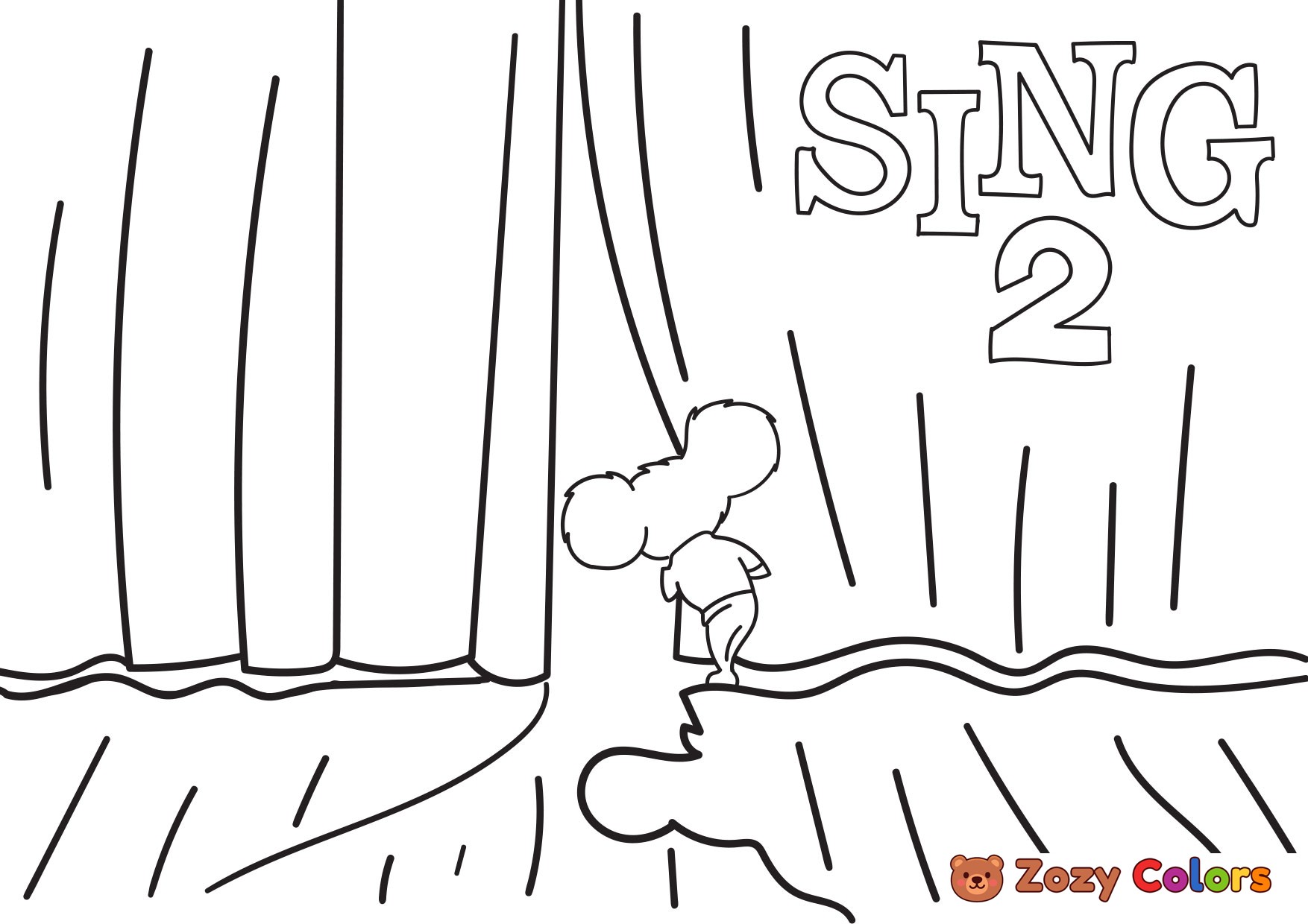 Sing 2 Buster behind the stage. Coloring page to print or download and color for your kids.