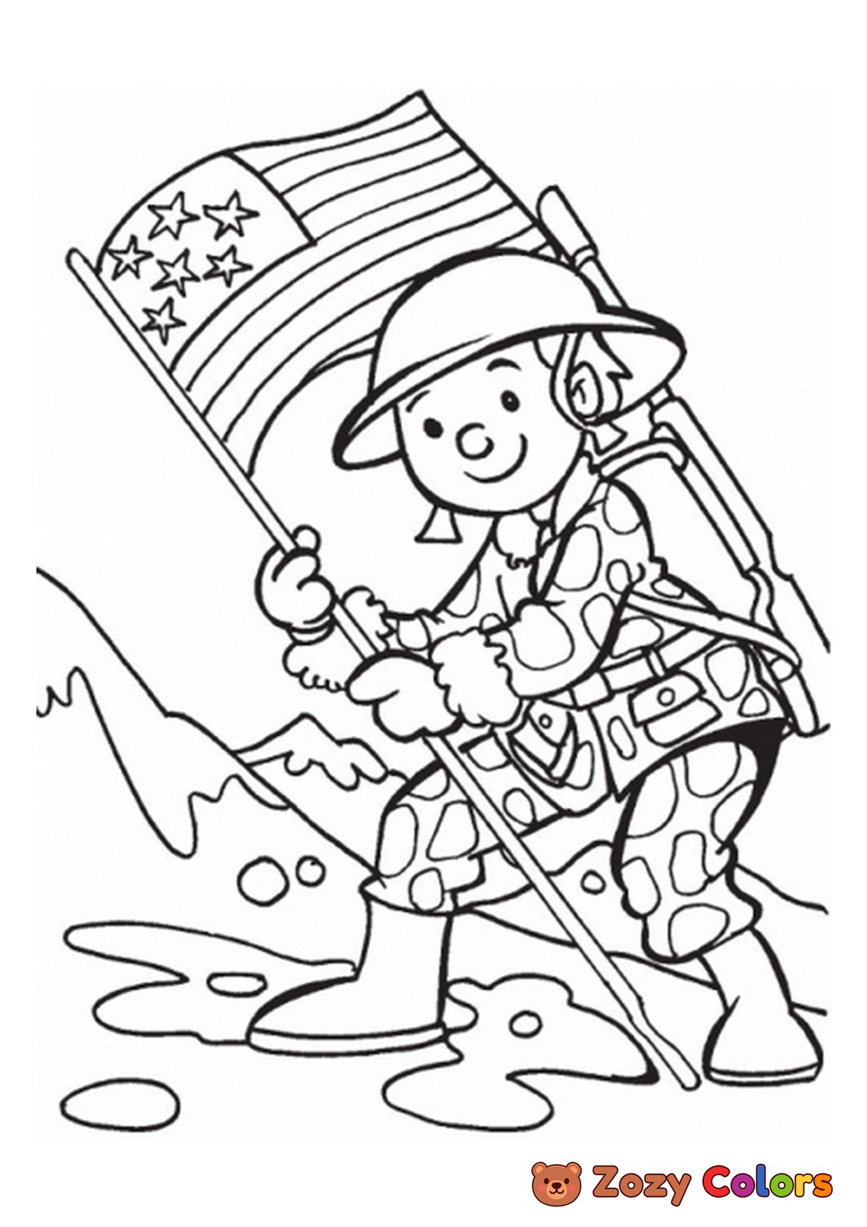 Solider holding a flag. Coloring page to print or download and color for your kids.
