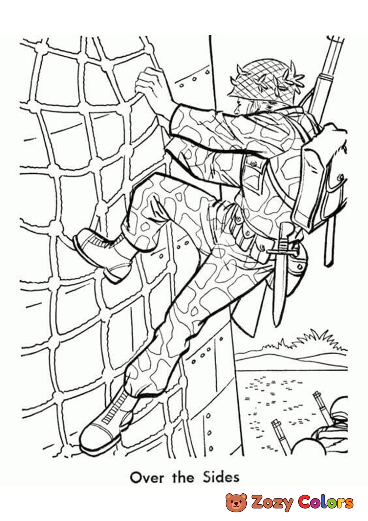 Soliders clinbing walls. Coloring page to print or download and color for your kids.