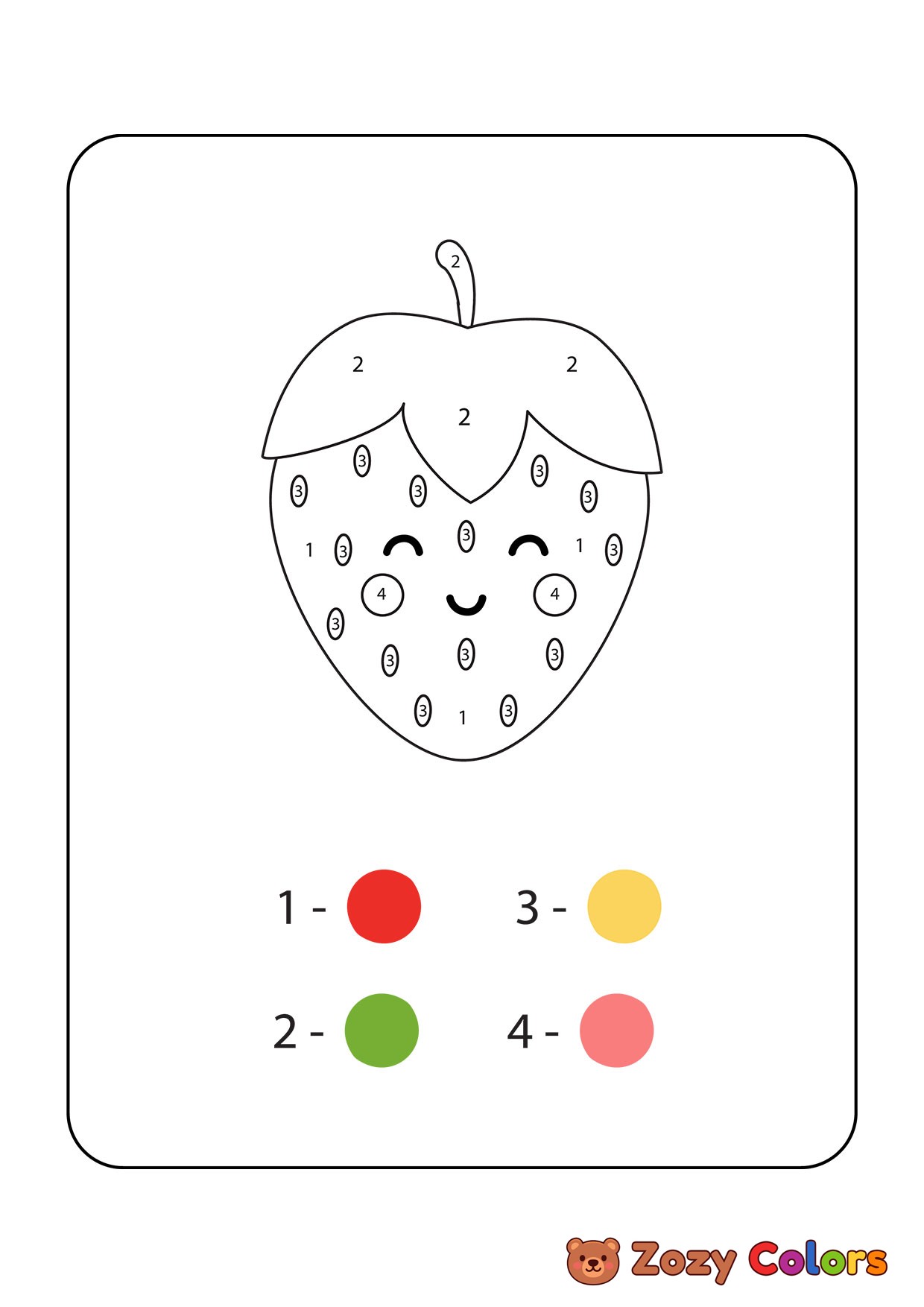 Strawberry color by numbers. Coloring page to print or download and color for your kids.