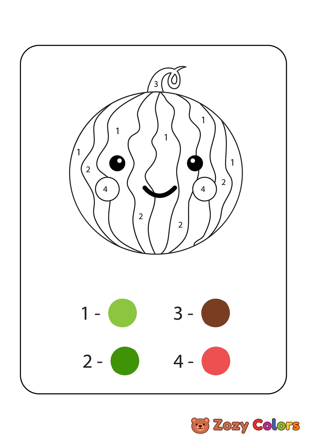 Watermellon color by numbers. Coloring page to print or download and color for your kids.