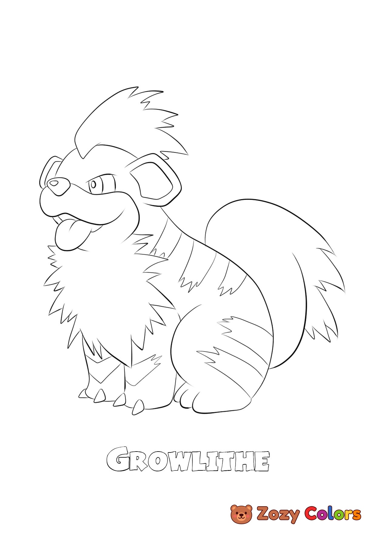 058 Growlithe. Coloring page to print or download and color for your kids.