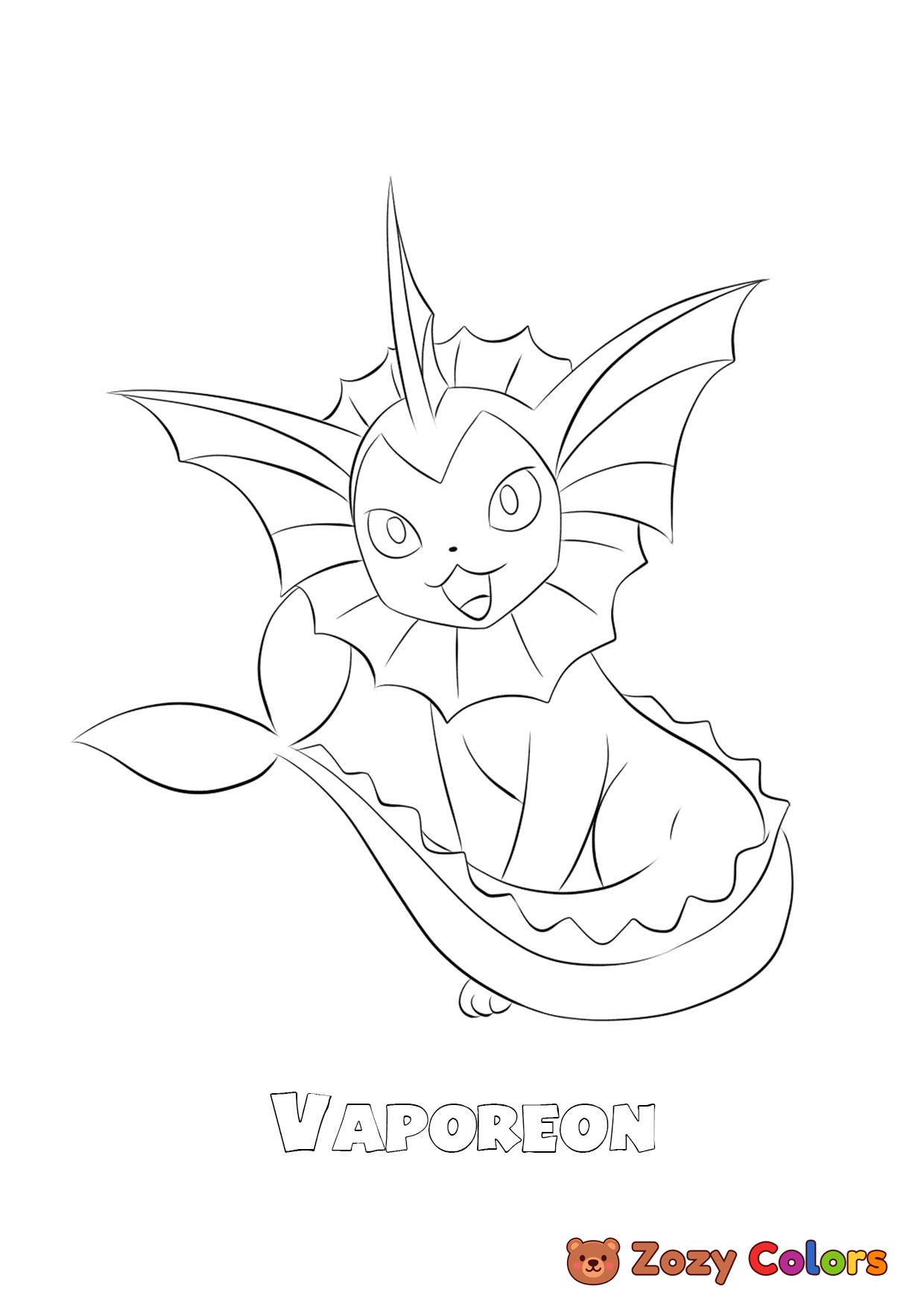 134 Vaporeon. Coloring page to print or download and color for your kids.