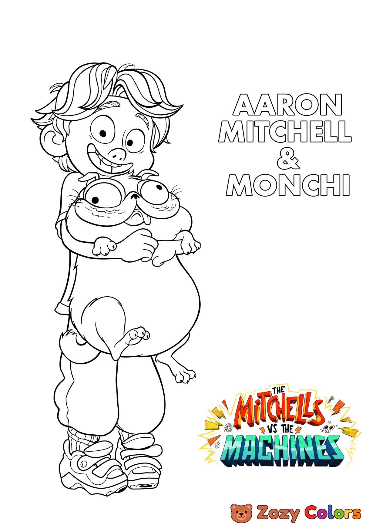 Aaron and Monchi - The Mitchells. Coloring page to print or download and color for your kids.