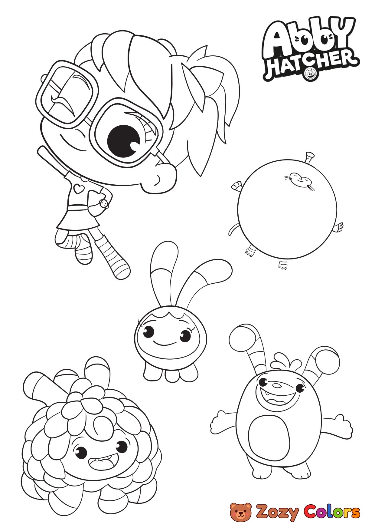 Abby Hatcher with her friends. Coloring page to print or download and color for your kids.